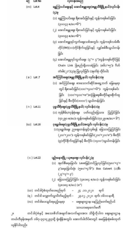 နေပြည်တော်စည်ပင်သာယာရေးကော်မတီ၊ အင်ဂျင်နီယာဌာန (လမ်း/တံတား) မှ အိတ်ဖွင့်တင်ဒါခေါ်ယူခြင်း