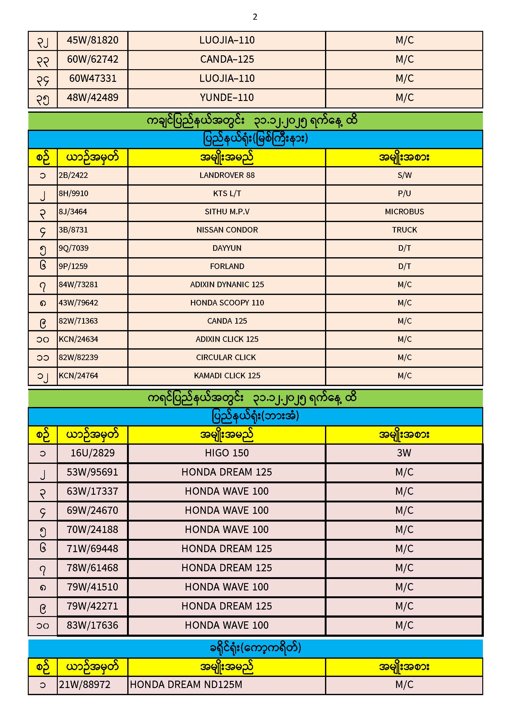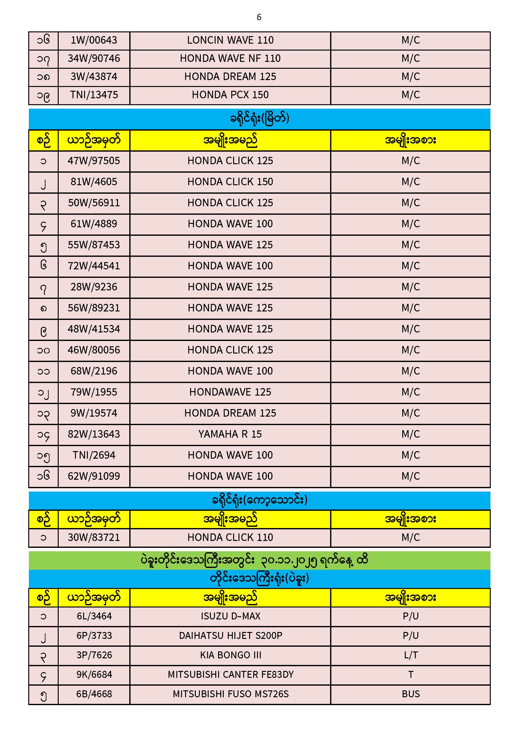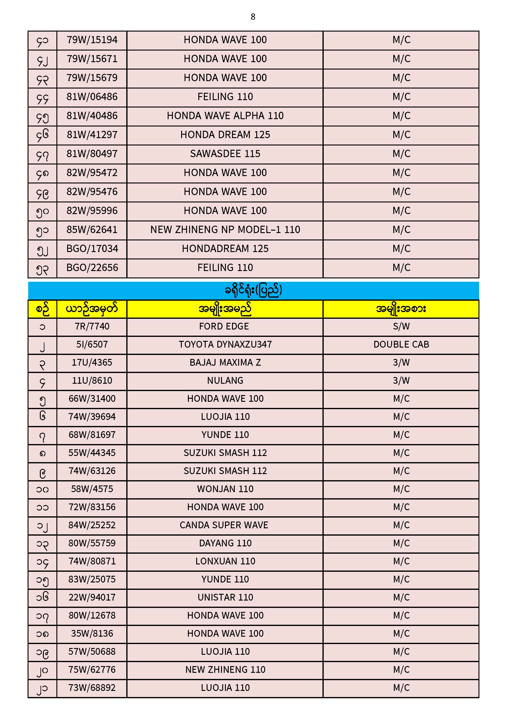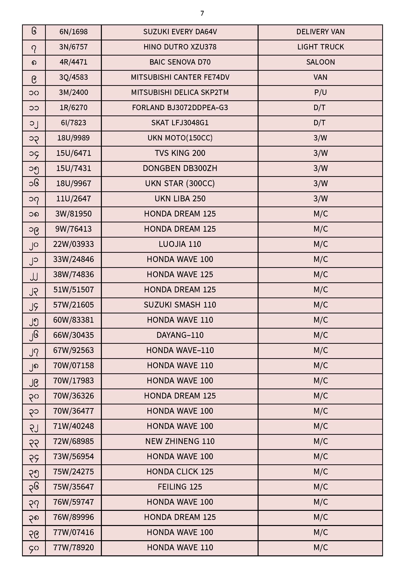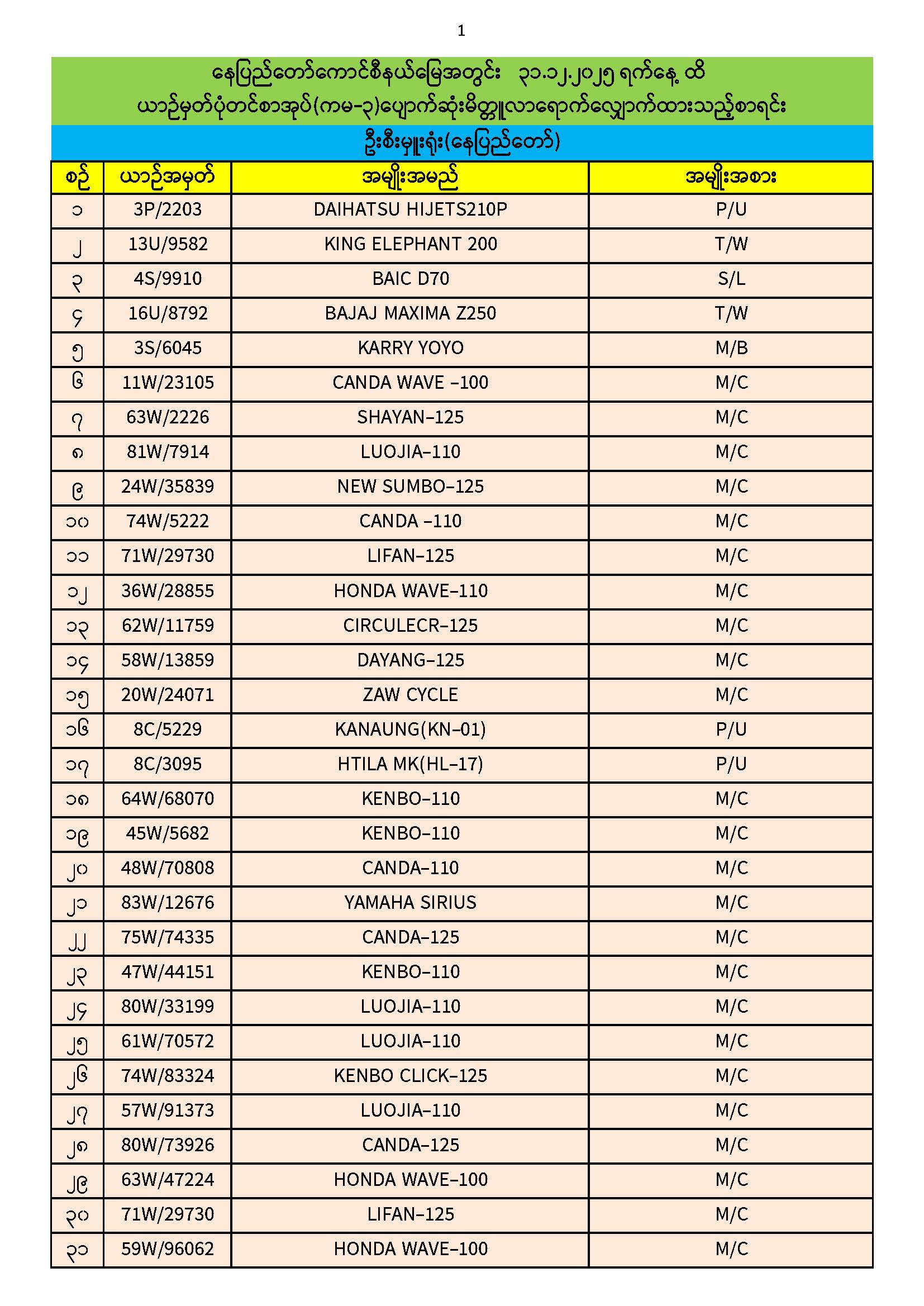 ၃၁.၁၂.၂၀၂၅ ရက်နေ့ထိ ယာဉ်မှတ်ပုံတင်စာအုပ်(ကမ-၃) ပျောက်ဆုံးမိတ္တူလာရောက် လျှောက်ထားသည့်စာရင်း