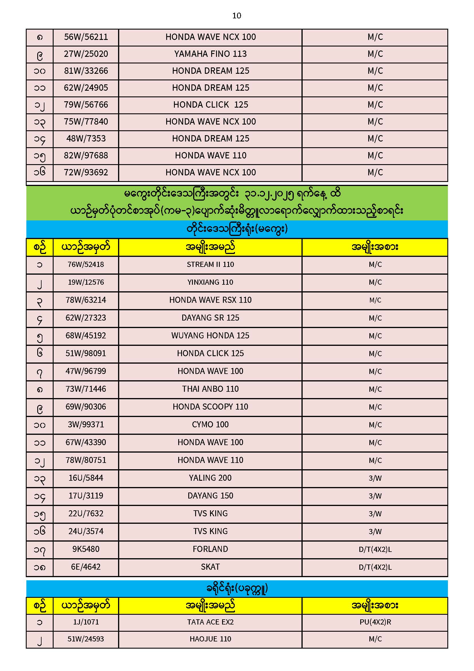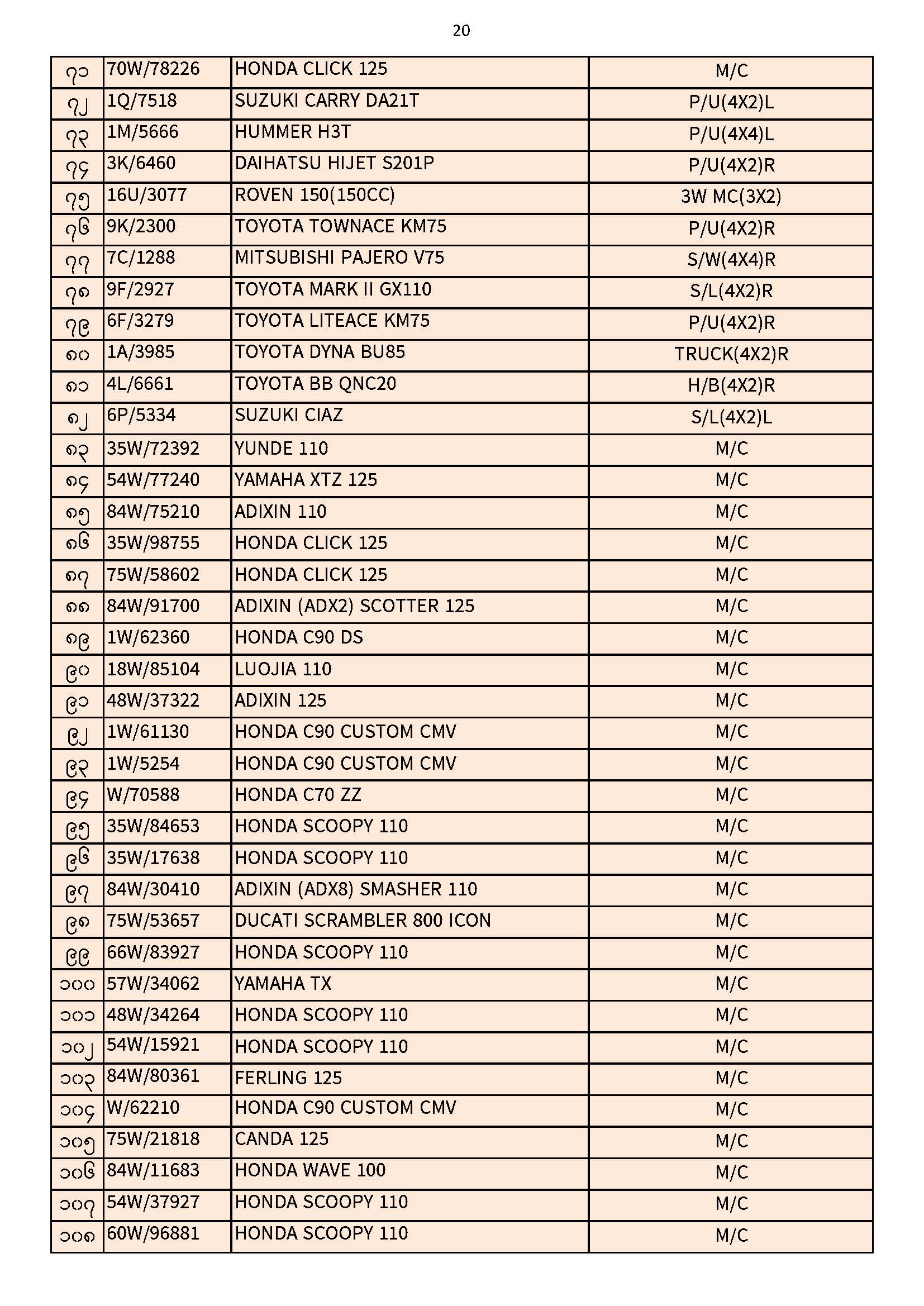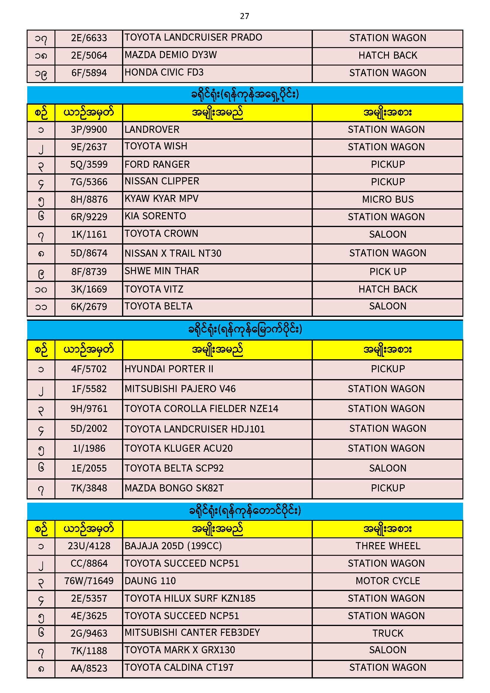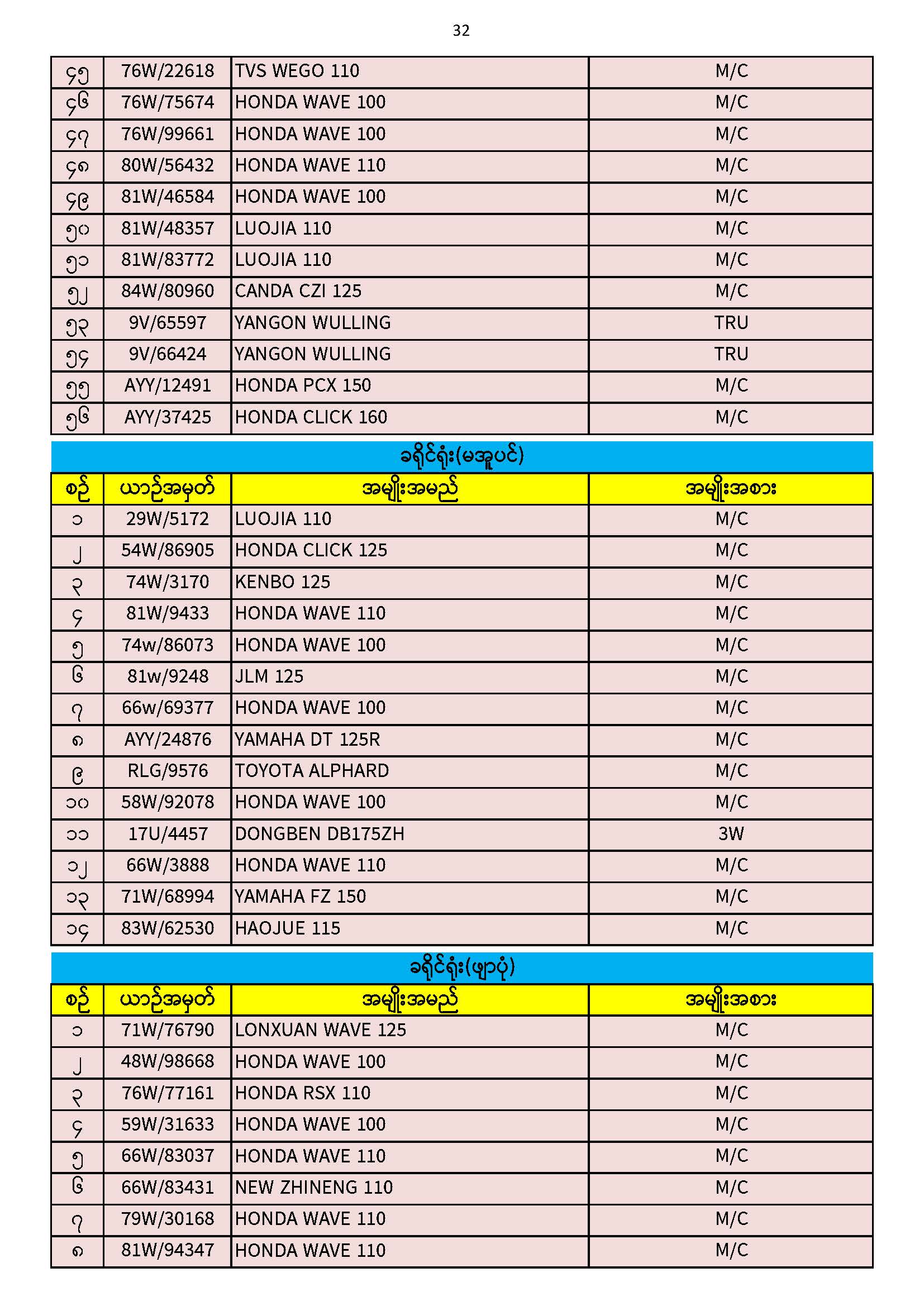 ၃၁.၁၂.၂၀၂၅ ရက်နေ့ထိ ယာဉ်မှတ်ပုံတင်စာအုပ်(ကမ-၃) ပျောက်ဆုံးမိတ္တူလာရောက် လျှောက်ထားသည့်စာရင်း