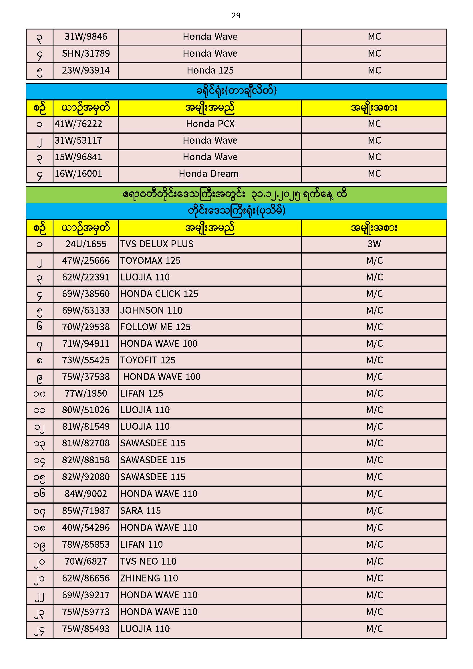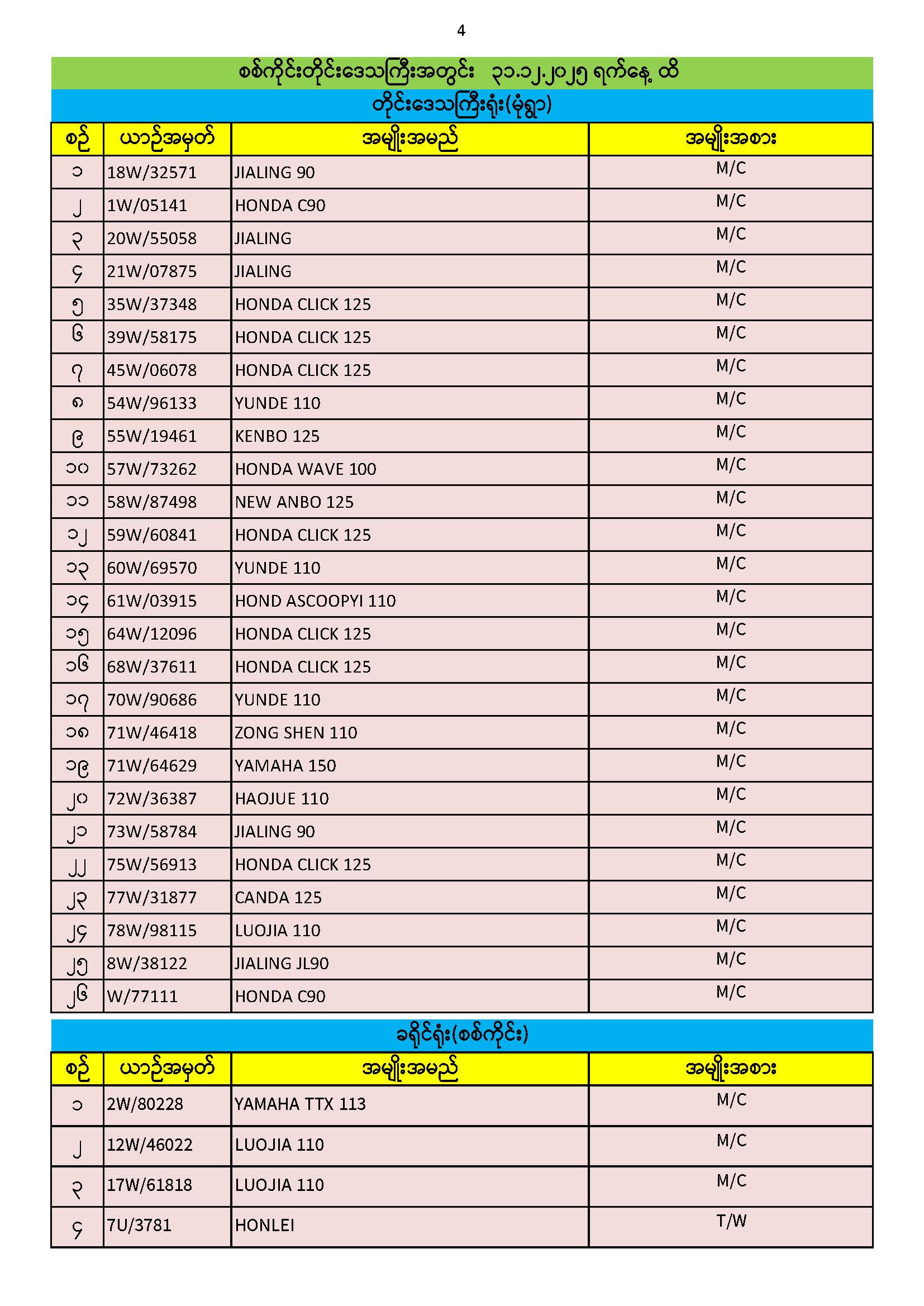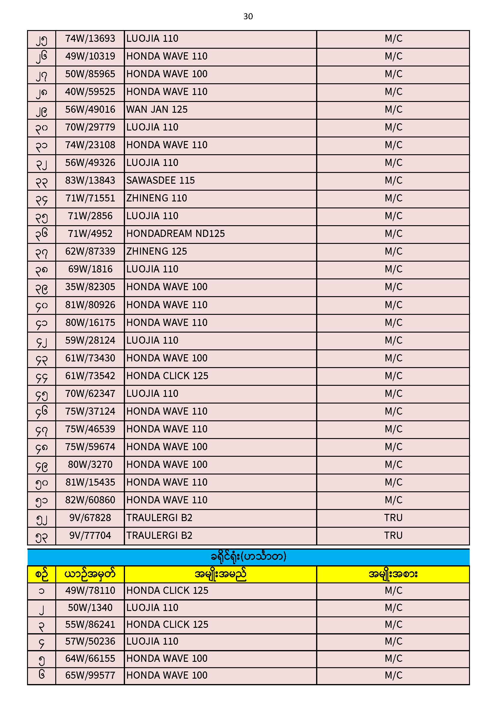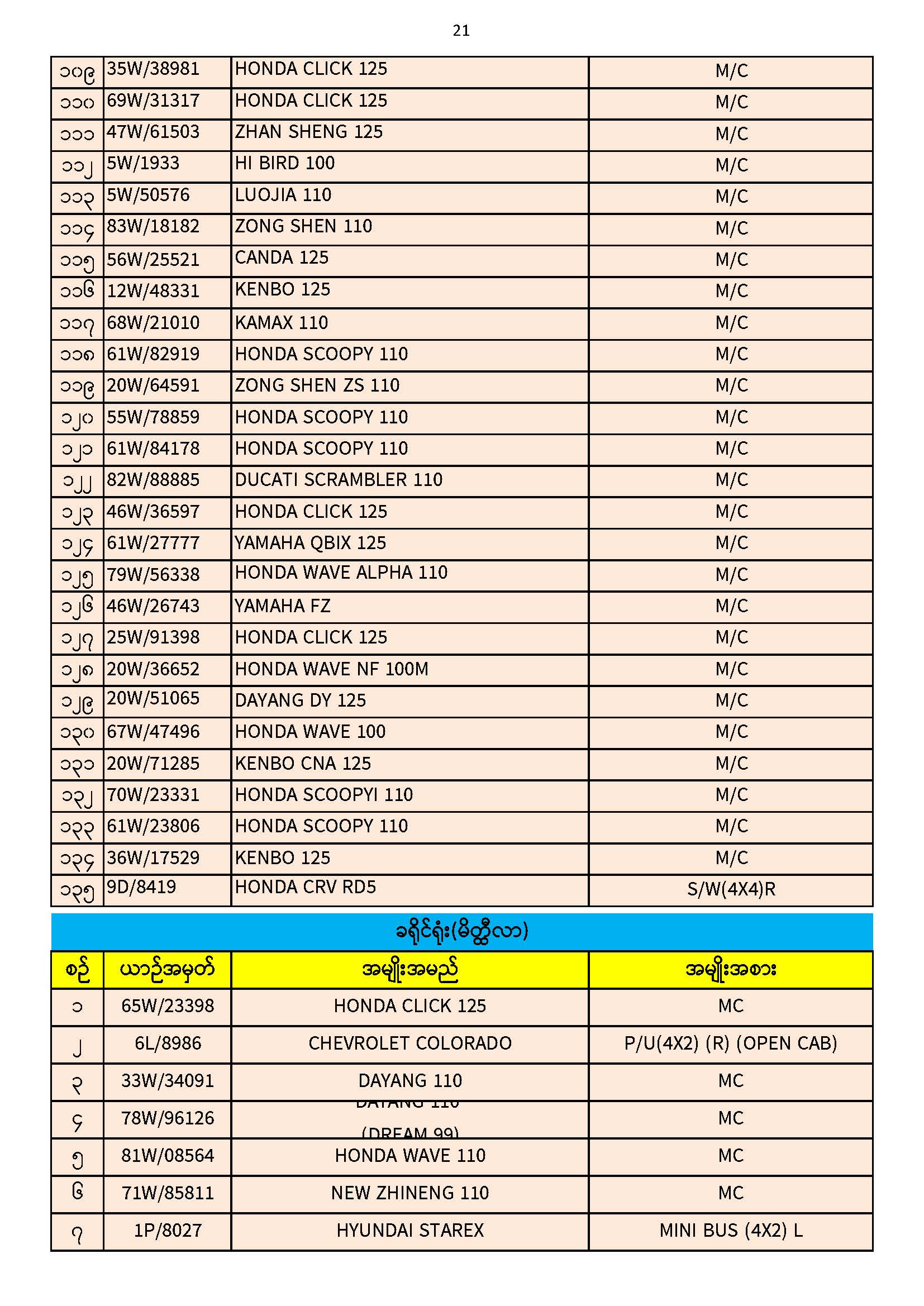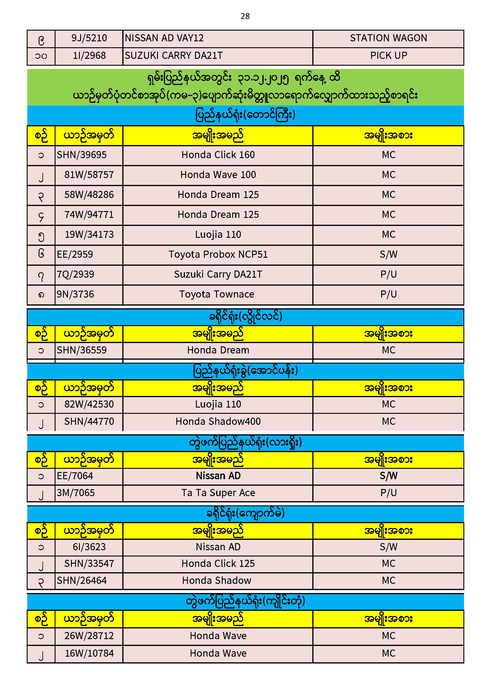 ၃၁.၁၂.၂၀၂၅ ရက်နေ့ထိ ယာဉ်မှတ်ပုံတင်စာအုပ်(ကမ-၃) ပျောက်ဆုံးမိတ္တူလာရောက် လျှောက်ထားသည့်စာရင်း
