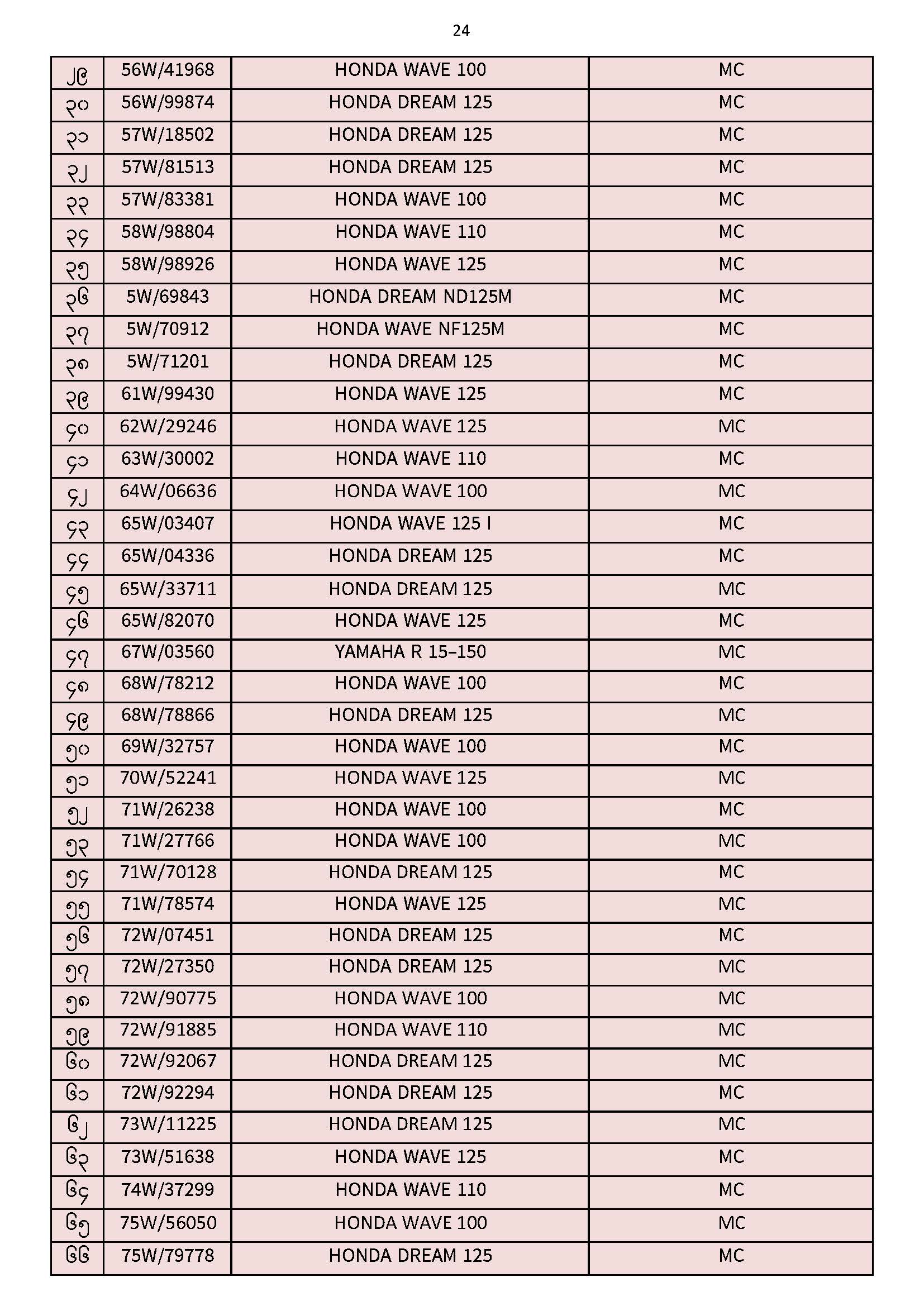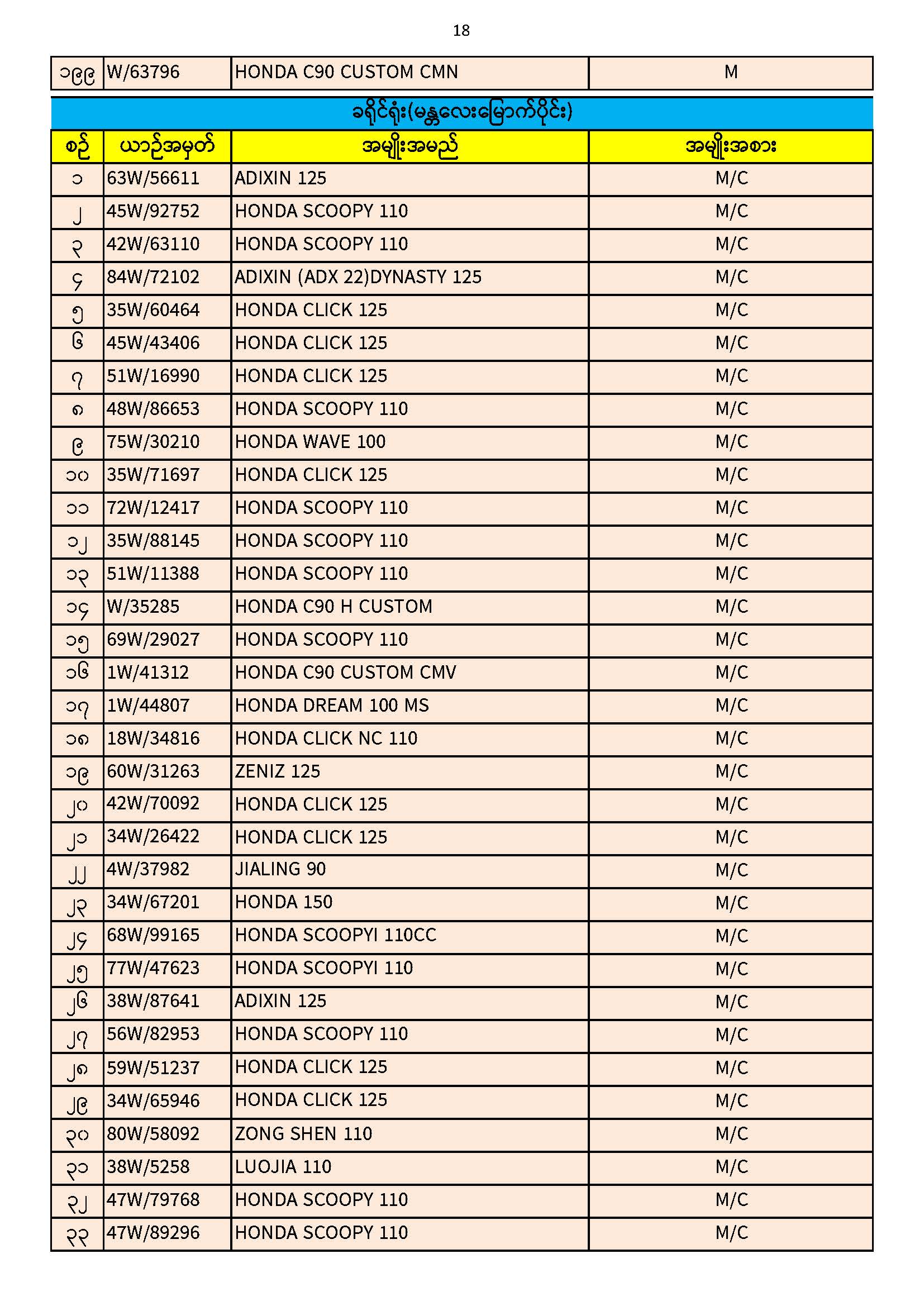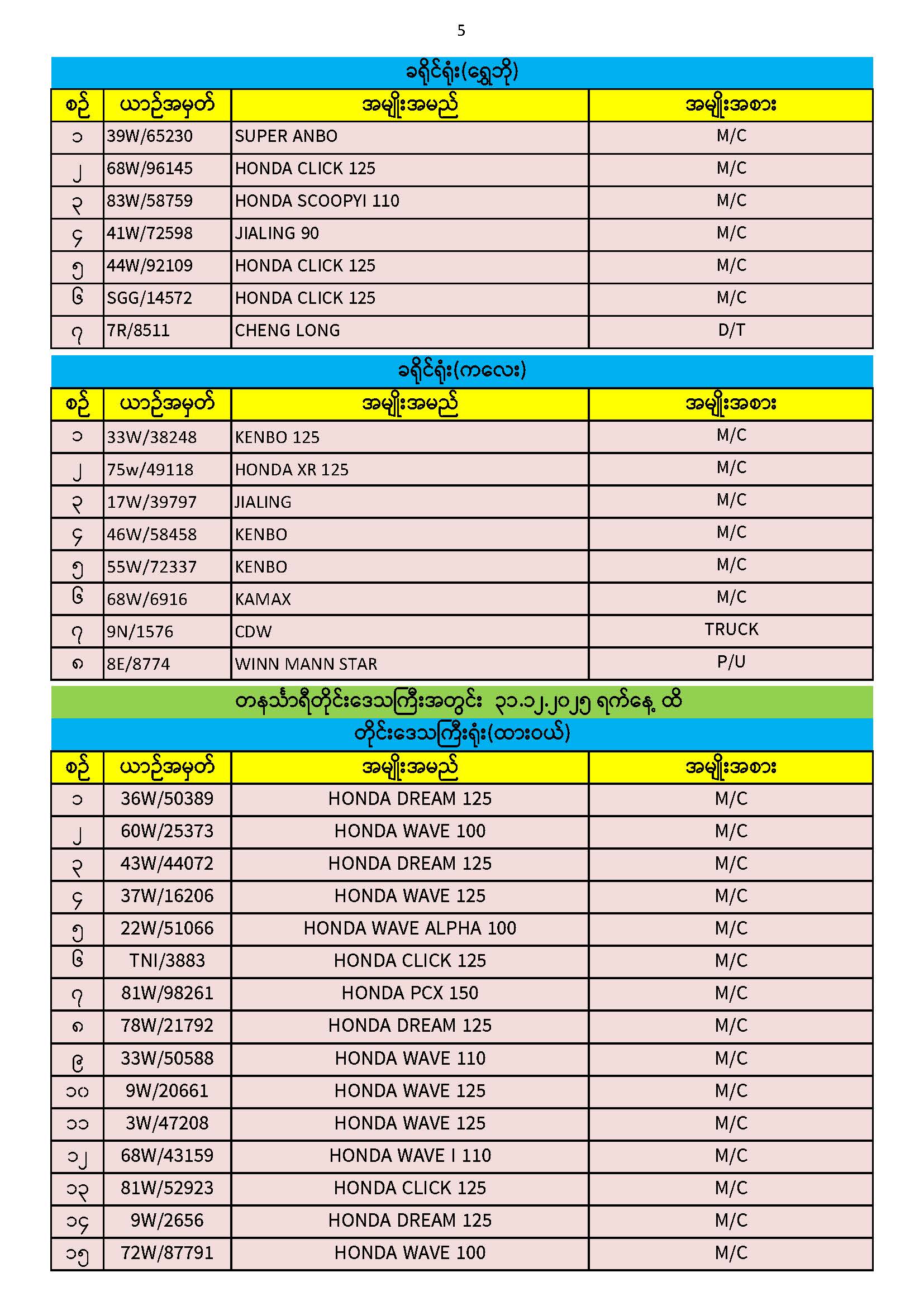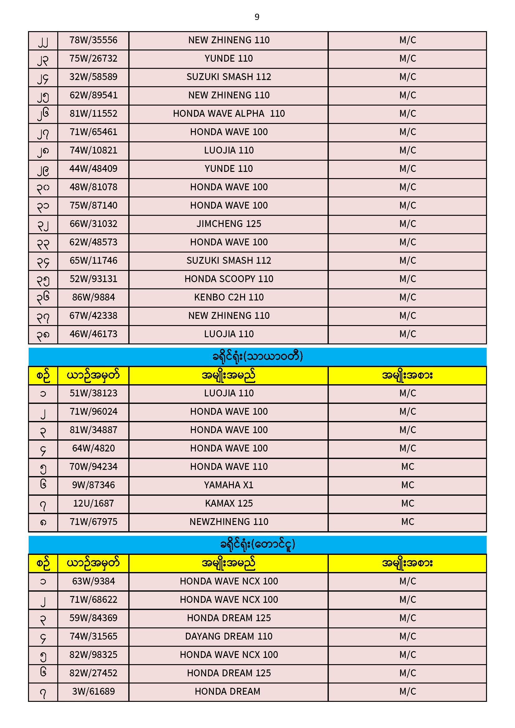 ၃၁.၁၂.၂၀၂၅ ရက်နေ့ထိ ယာဉ်မှတ်ပုံတင်စာအုပ်(ကမ-၃) ပျောက်ဆုံးမိတ္တူလာရောက် လျှောက်ထားသည့်စာရင်း