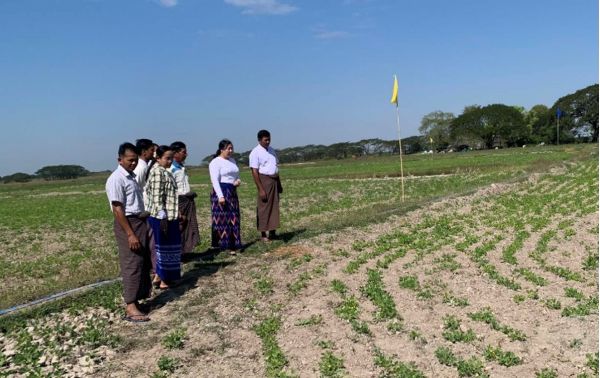 လူမှုစီးပွားမြှင့်တင်ရေး (သက်တန့်ရောင်စီမံကိန်း) ဖြင့် ဆောင်းဆီထွက်သီးနှံ(မြေပဲ) စိုက်ပျိုးထားမှုအား တာဝန်ရှိသူများ ကွင်းဆင်းကြည့်ရှုစစ်ဆေး