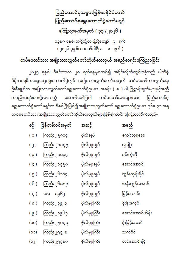 Downloadတပ်မတော်သားပြည်သူ့လွှတ်တော်ကိုယ်စားလှယ် အမည်စာရင်းထုတ်ပြန်ကြေညာ