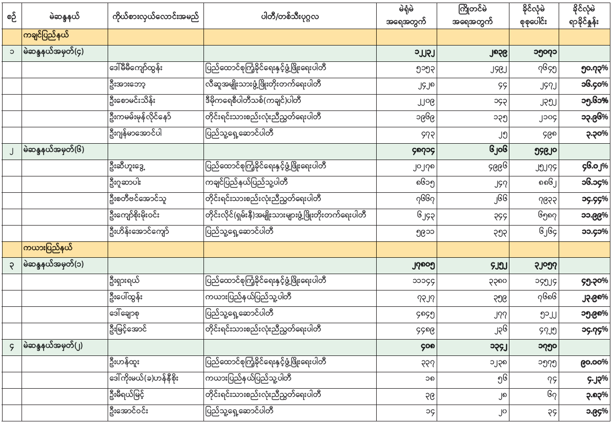 ၂၀၂၅ ခုနှစ် ပါတီစုံဒီမိုကရေစီအထွေထွေရွေးကောက်ပွဲ အမျိုးသားလွှတ်တော်ကိုယ်စားလှယ်လောင်းတစ်ဦးချင်း၏ ဆန္ဒမဲရရှိမှုအခြေအနေ