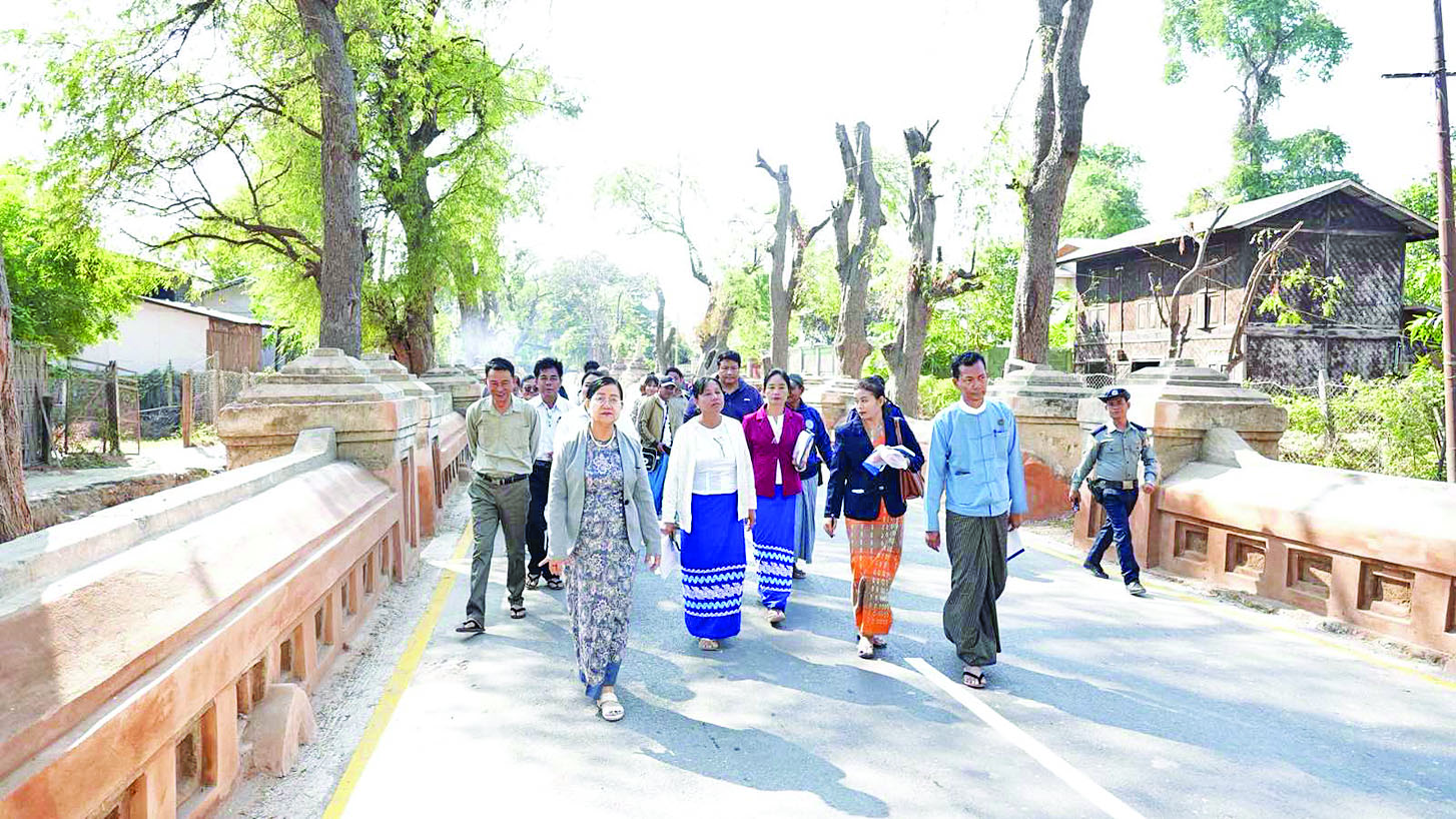 သာသနာရေးနှင့်ယဉ်ကျေးမှုဝန်ကြီးဌာန ဒုတိယဝန်ကြီး ဒေါ်နုမြဇံသည် ယမန်နေ့က ငလျင်ကြောင့် ထိခိုက်ပျက်စီးခဲ့သည့် မဟာမင်းထင်ကျောင်းကို ကြည့်ရှုစစ်ဆေးကာ ရှေးဟောင်းသစ်သား ဘုန်းတော်ကြီးကျောင်းဖြစ်ပြီး အနုလက်ရာများကျန်ရှိသည့် ကျောင်းဖြစ်သည့်အတွက် ပြုပြင်ထိန်းသိမ်းရေးဆောင်ရွက်ရာတွင် ကျွမ်းကျင်ပညာရှင်များဖြင့် စနစ်တကျဆောင်ရွက်ရန် မှာကြားသည်။