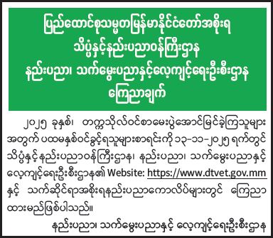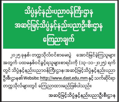 ပြည်ထောင်စုသမ္မတမြန်မာနိုင်ငံတော်အစိုးရ သိပ္ပံနှင့်နည်းပညာဝန်ကြီးဌာန နည်းပညာ၊ သက်မွေးပညာနှင့်လေ့ကျင့်ရေးဦးစီးဌာန ကြေညာချက်