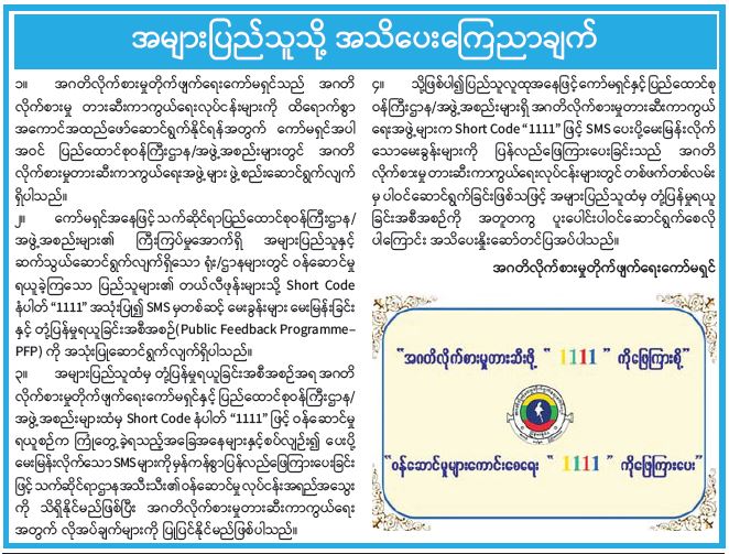 အများပြည်သူသို့ အသိပေးကြေညာချက်