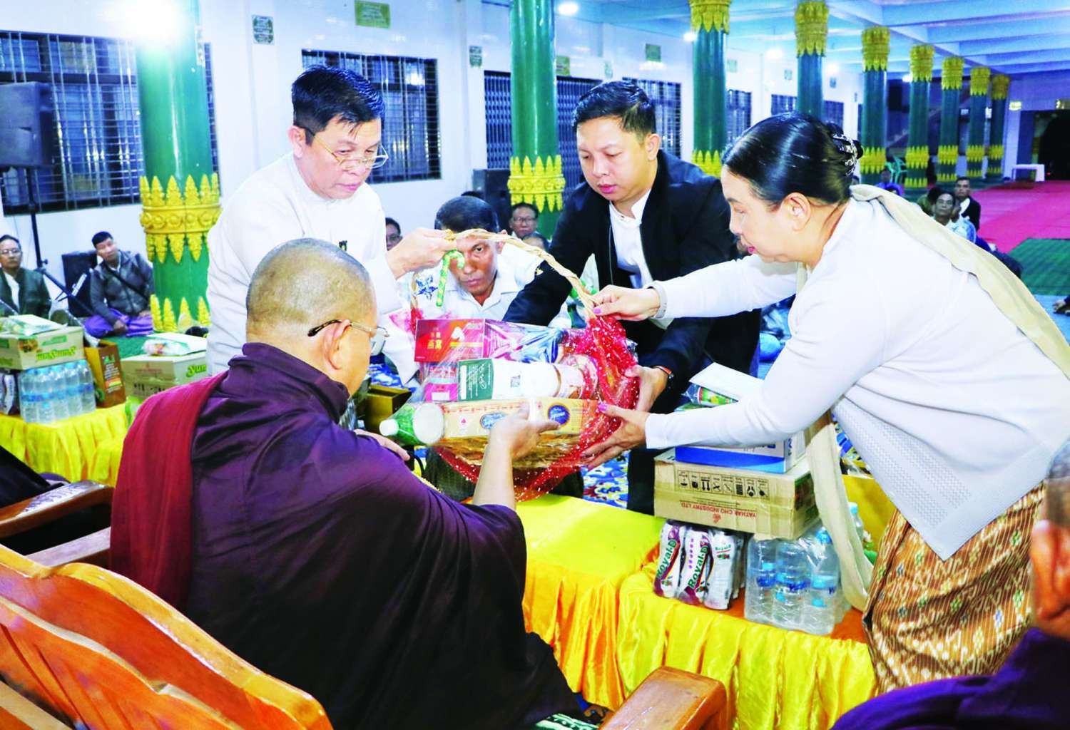 လူဝင်မှုကြီးကြပ်ရေးနှင့်ပြည်သူ့အင်အားဝန်ကြီးဌာန ပြည်ထောင်စုဝန်ကြီး ဦးမြင့်ကြိုင်သည် တာဝန်ရှိသူများနှင့်အတူ ယနေ့နံနက်ပိုင်းတွင် ဧရာဝတီတိုင်းဒေသကြီး မော်လမြိုင်ကျွန်းမြို့ရှိ မိုးညိုပရိယတ္တိစာသင်တိုက်၌ကျင်းပသည့် ပန်းပေါင်းစုံဗုဒ္ဓရုပ်ပွားဆင်းတုတော်အဆူ(၁၀၀၀) ဗုဒ္ဓါဘိသေကအနေကဇာတင် မင်္ဂလာအခမ်အနားသို့ တက်ရောက်ကြည်ညိုသည်။