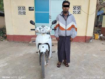 မွန်ပြည်နယ်၊ ဘီးလင်းမြို့နယ်၌ လိုင်စင်မဲ့ မော်တော်ဆိုင်ကယ် လက်ဝယ်ထားစီးနင်းသူ အမျိုးသား တစ်ဦးအား ဖမ်းဆီးအရေးယူ