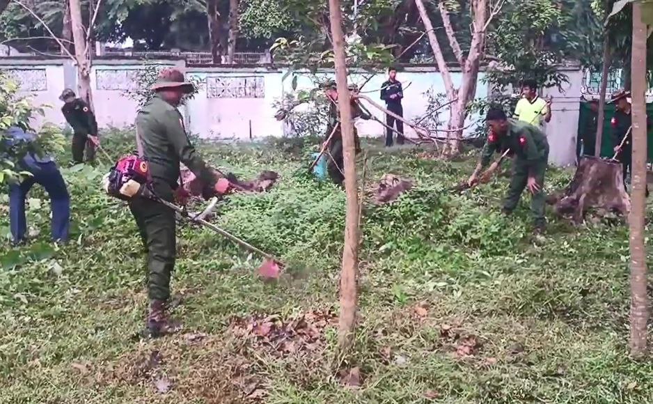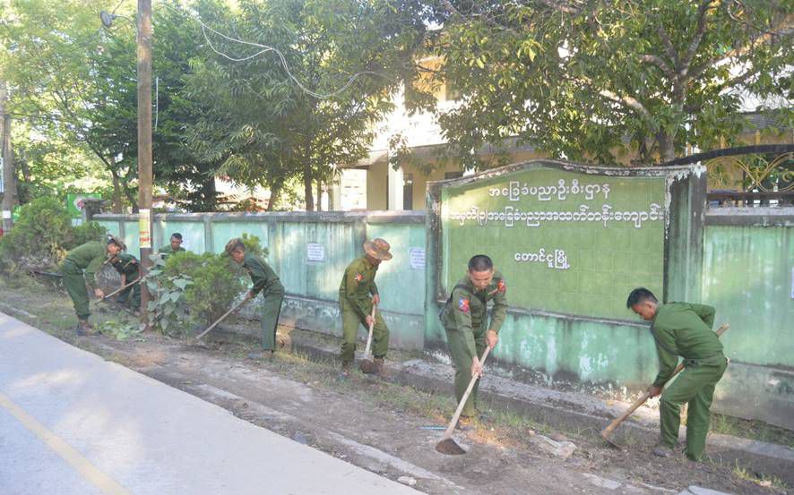 ထိုသို့ ဆောင်ရွက်ပေးလျက်ရှိရာ ယနေ့တွင် ရှမ်းပြည်နယ် (မြောက်ပိုင်း) လားရှိုးမြို့နယ်၊ ရန်ကုန်တိုင်းဒေသကြီး၊ စမ်းချောင်းမြို့နယ်အပါအဝင် မြို့နယ် ၁၆ မြို့နယ်နှင့် ပဲခူးတိုင်းဒေသကြီး၊ တောင်ငူမြို့နယ်တို့၌ နယ်မြေခံတပ်မတော်သားများ၊ မြန်မာနိုင်ငံရဲတပ်ဖွဲ့ဝင်များ၊ မီးသတ်တပ်ဖွဲ့ဝင်များ၊ စစ်မှုထမ်းဟောင်းအဖွဲ့ဝင်များ၊ ဌာနဆိုင်ရာဝန်ထမ်းများ၊ လူမှုရေးအသင်းအဖွဲ့များနှင့် ဒေသခံပြည်သူများက အခြေခံပညာကျောင်းများအတွင်း/အပြင်ရှိ ချုံနွယ်ပေါင်းမြက်များ ခုတ်ထွင်ရှင်းလင်းခြင်း၊ အမှိုက်များ ရှင်းလင်းခြင်း၊ ရေစီးရေလာကောင်းမွန်စေရေး ရေနုတ်မြောင်းများ တူးဖော်ပေးခြင်း၊ ရေကန်များတွင် အဘိတ်ဆေးများခတ်ပေးခြင်း၊ ခြင်ခိုအောင်းနိုင်သည့်နေရာများအား ခြင်ဆေးဖျန်းခြင်းနှင့် ကျန်းမာရေးအသိပညာပေးလက်ကမ်းစာစောင်များ ဖြန့်ဝေပေးခြင်းများကို စုပေါင်းဆောင်ရွက်ကြသည်။