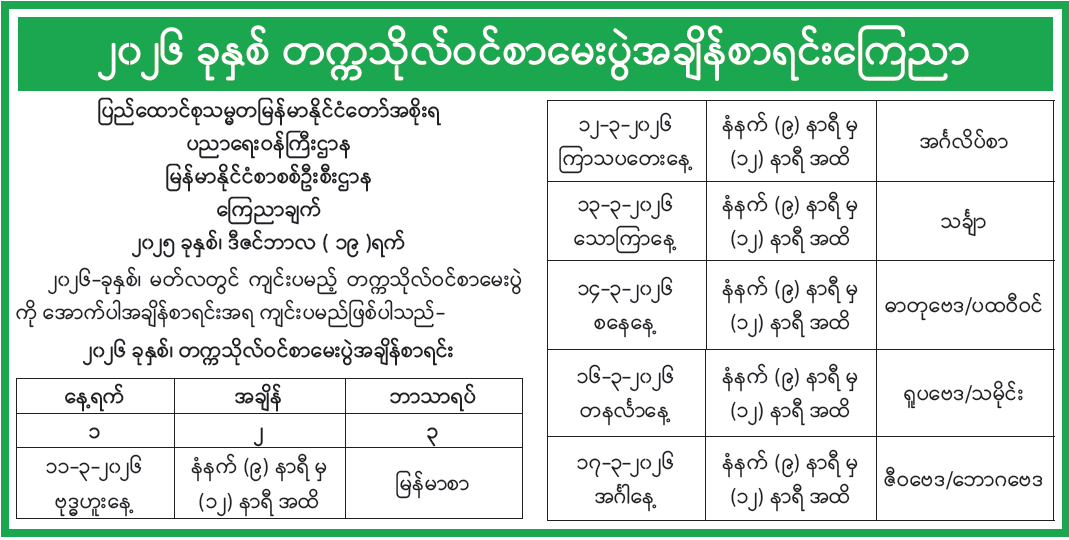 လျှောက်လွှာပိတ်ရက်တိုးမြှင့်သတ်မှတ်ကြောင်းကြေညာခြင်း