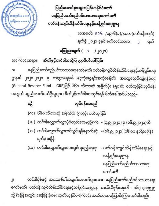 အမှတ်(၁)စက်မှုသင်တန်းကျောင်း(ဆင်တဲ)နှင့် အမှတ်(၆)စက်မှုသင်တန်းကျောင်း(မြင်းခြံ) တို့တွင် တည်ဆောက်ရေးလုပ်ငန်းဆောင်ရွက်ရန် အိတ်ဖွင့်တင်ဒါခေါ်ယူခြင်း