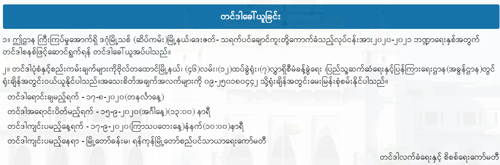 ရန်ကုန်မြို့တော်စည်ပင်သာယာရေးကော်မတီမှ တင်ဒါခေါ်ယူခြင်း
