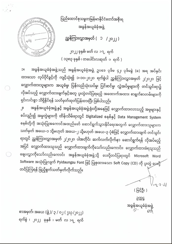 ထုတ်ဝေသူ: Information Technology and Cyber Security Department
