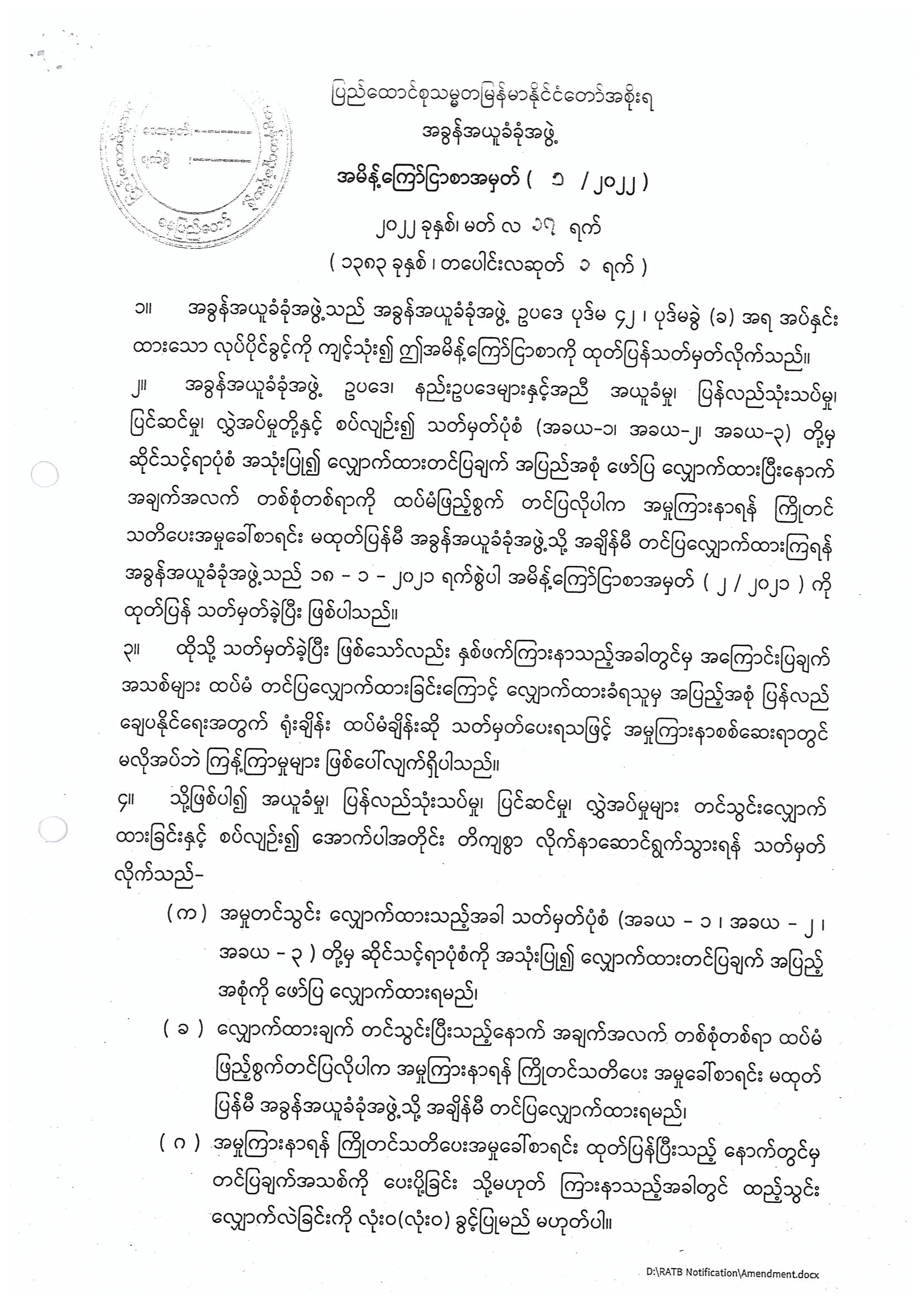 အခွန်အယူခံခုံအဖွဲ့ ညွှန်ကြားလွှာအမှတ် ၂ / ၂၀၂၂