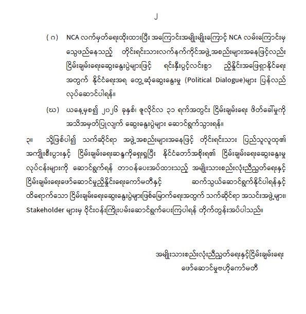 ပြည်ထောင်စုသမ္မတမြန်မာနိုင်ငံတော် အမျိုးသားစည်းလုံးညီညွတ်ရေးနှင့် ငြိမ်းချမ်းရေးဖော်ဆောင်မှုဗဟိုကော်မတီ ကြေညာချက်အမှတ် ၁ / ၂၀၂၆