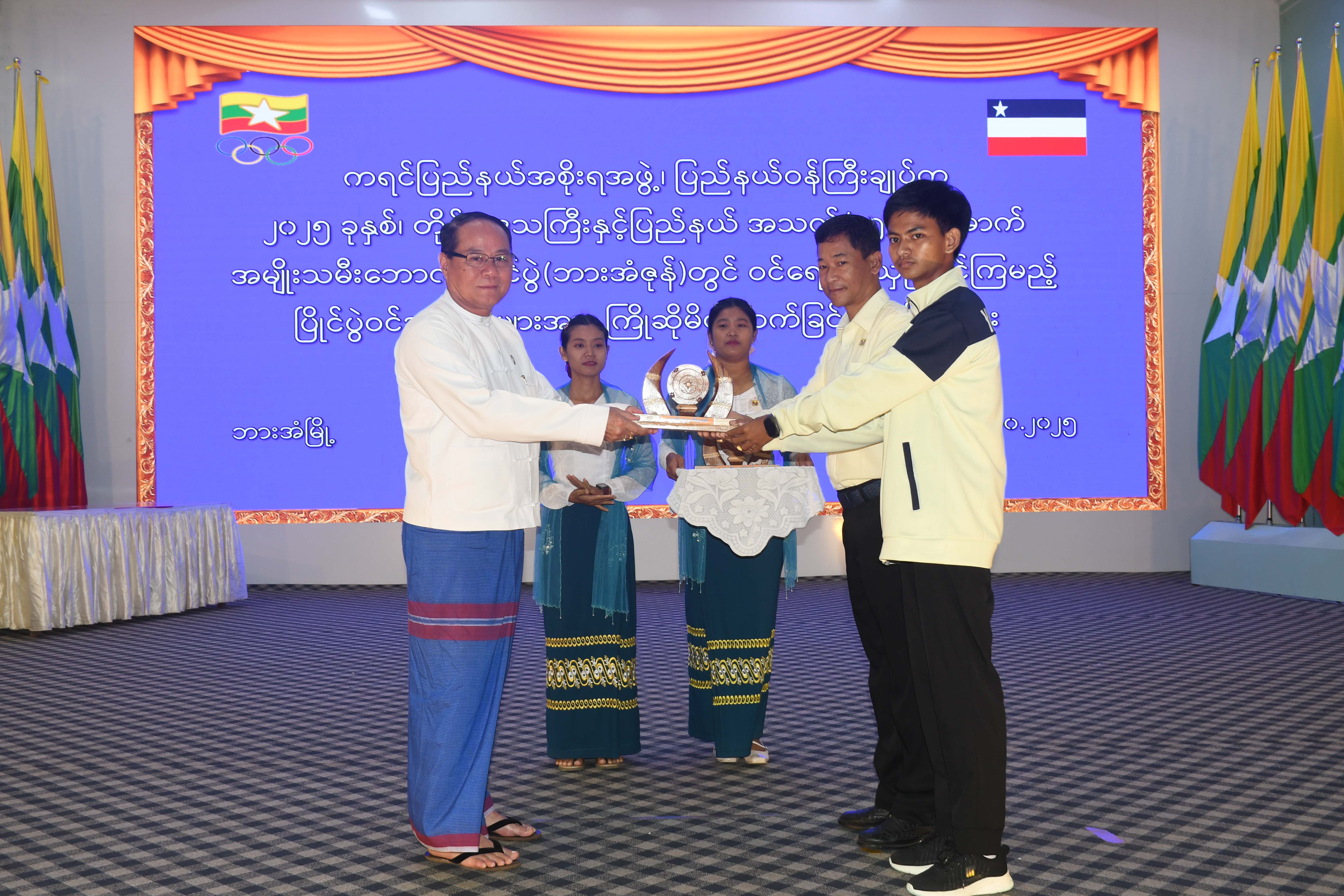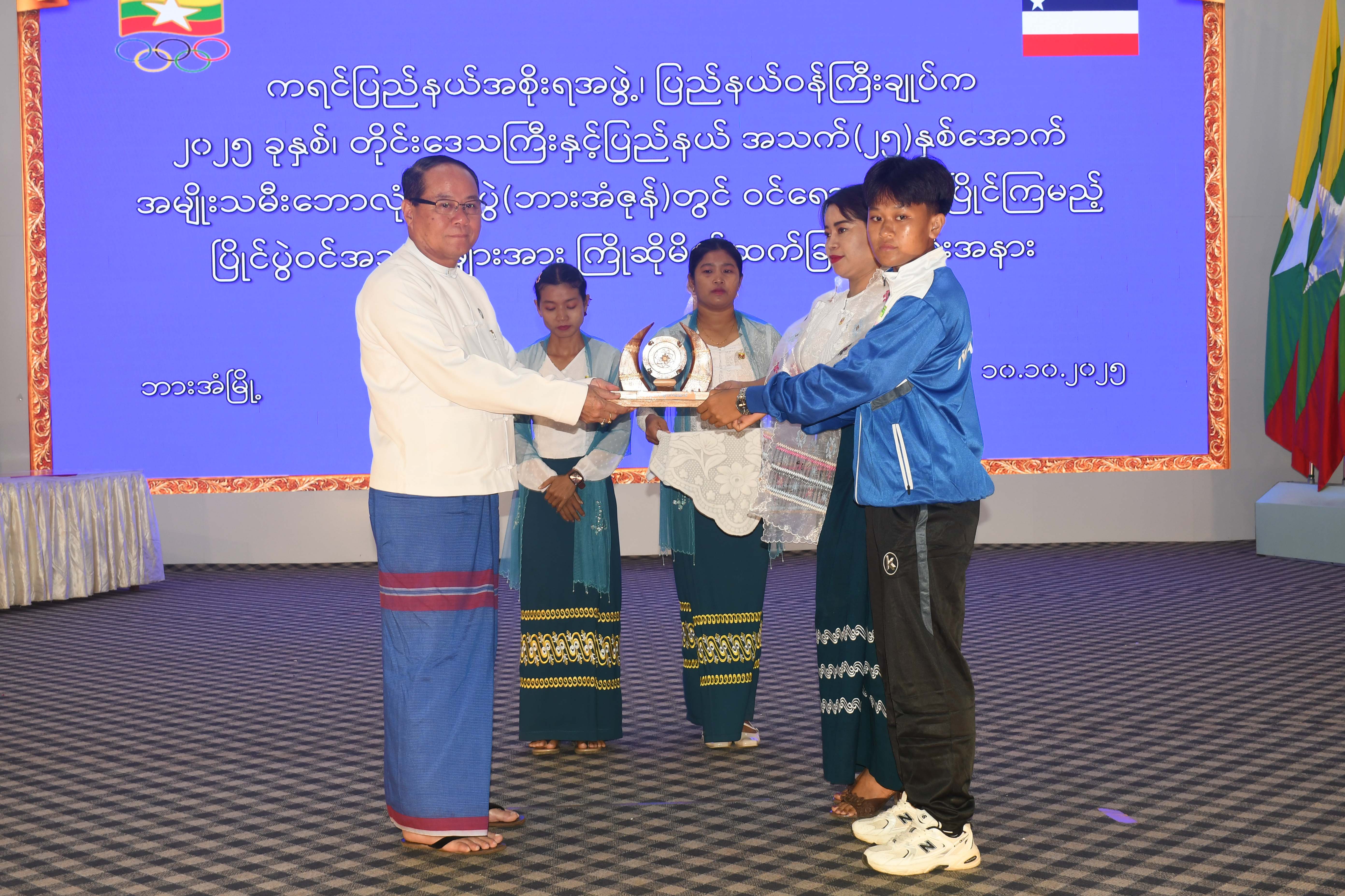 ၂၀၂၅ ခုနှစ်၊ တိုင်းဒေသကြီးနှင့်ပြည်နယ် အသက်(၂၅)နှစ်အောက် အမျိုးသမီးဘောလုံးပြိုင်ပွဲ အုပ်စု(ခ)ဘားအံဇုန်တွင် ဝင်ရောက်ယှဉ်ပြိုင်ကြမည့် တိုင်းဒေသကြီးနှင့်ပြည်နယ်ကိုယ်စားပြုအသင်းများအား ကြိုဆို မိတ်ဆက်သည့်အခမ်းအနားကို အောက်တိုဘာလ ၁၀ ရက်နေ့ နံနက်ပိုင်းက ဘားအံမြို့၊ ဇွဲကပင်ခန်းမ၌ ကျင်းပသည်။