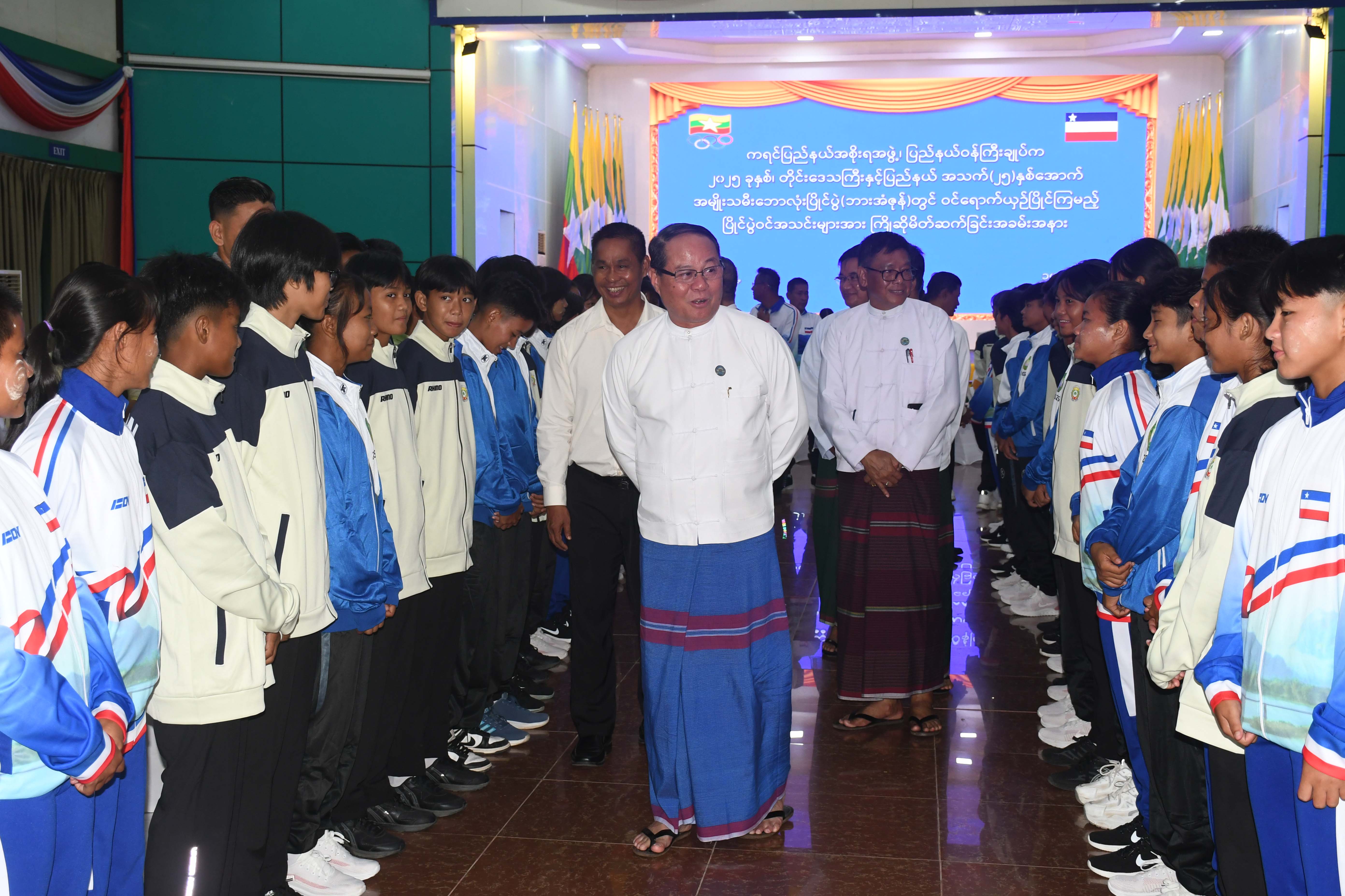 ပြည်နယ်ဝန်ကြီးချုပ်ဦးစောမြင့်ဦး တိုင်းဒေသကြီးနှင့်ပြည်နယ် အသက်(၂၅)နှစ်အောက် အမျိုးသမီးဘောလုံးပြိုင်ပွဲ အုပ်စု(ခ)ဘားအံဇုန် ယှဉ်ပြိုင်မည့်အသင်းများအားတွေ့ဆုံအားပေး