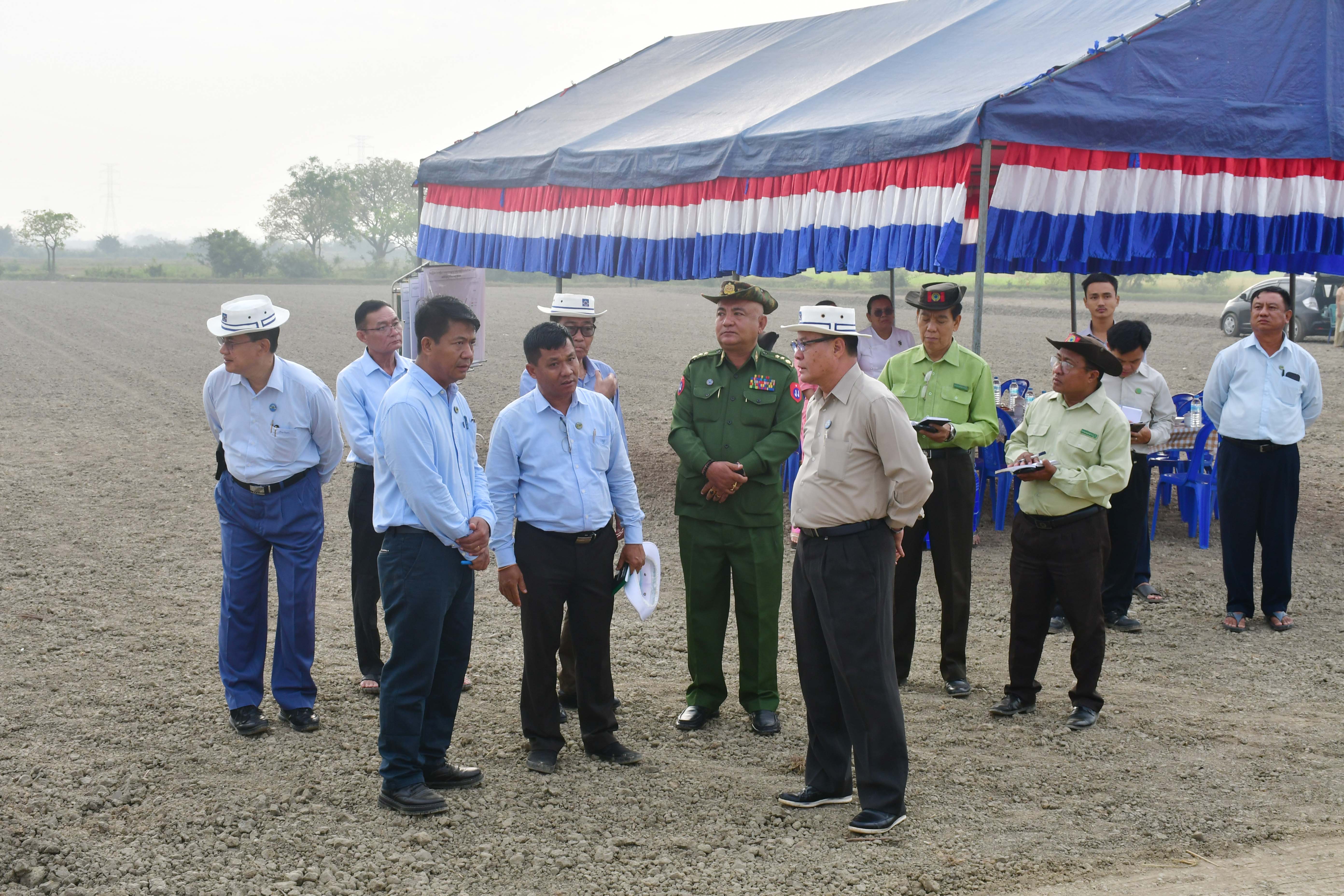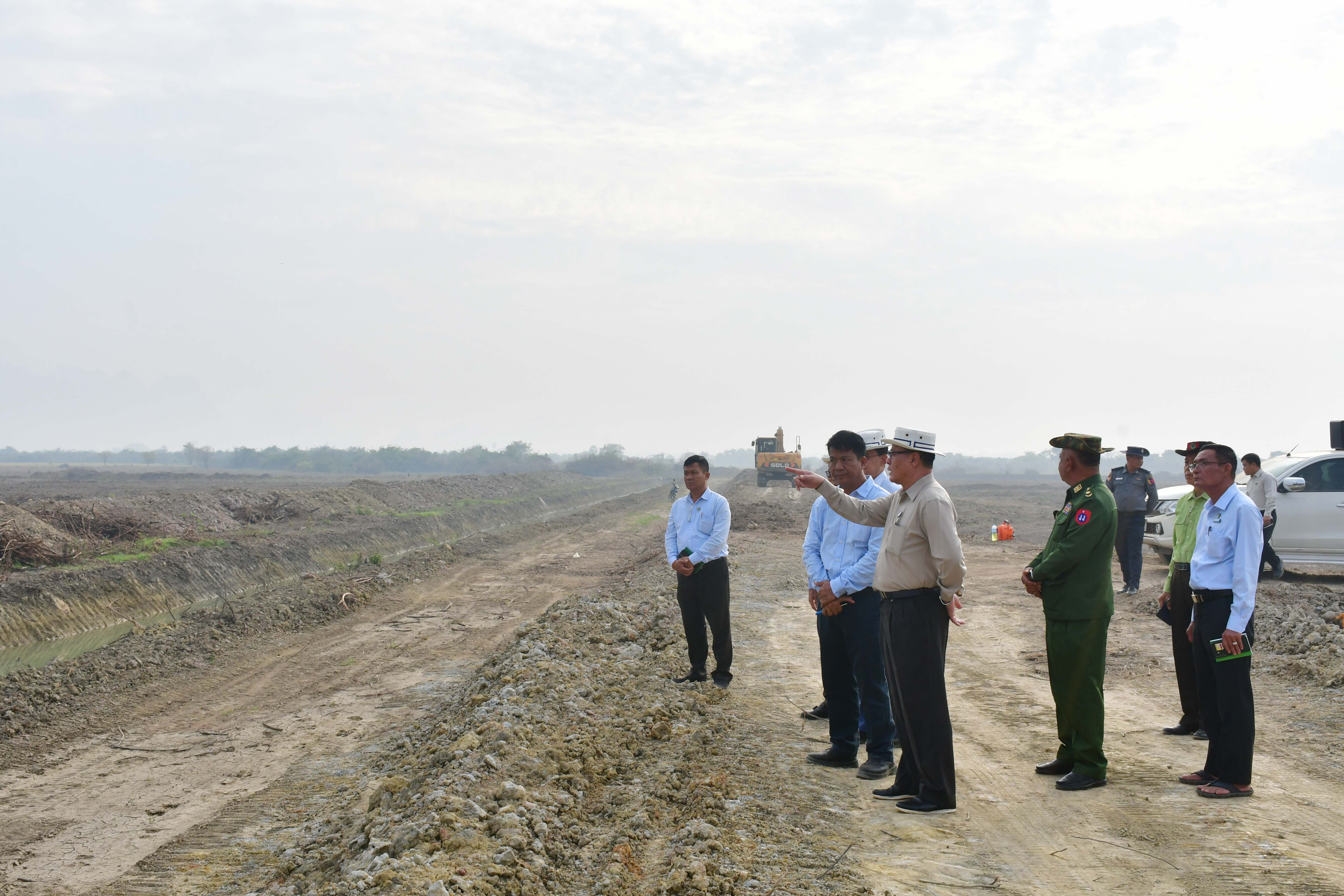ထို့နောက် ပြည်နယ်ဝန်ကြီးချုပ်နှင့်တာဝန်ရှိသူများသည် အဆိုပါလယ်ယာမြေအဆင့်မြှင့်တင်ဆောင်ရွက်သည့် စိုက်ဧကများတွင် စိုက်ပျိုးရေလုံလောက်စွာရရှိနိုင်ရေးအတွက် ရေသွင်း၊ရေနုတ်မြောင်းများ၊ ရေတံခါးများအား ကြည့်ရှု စစ်ဆေးရာ ဆည်မြောင်းနှင့်ရေအသုံးချမှုစီမံခန့်ခွဲရေးဦးစီးဌာန ပြည်နယ်ဦးစီးမှူး နှင့်တာဝန်ရှိသူများက တောင်သူများ ရာသီမရွေးစိုက်ပျိုးရေရရှိနိုင်ရန် ဆည်မြောင်းလုပ်ငန်းများဆောင်ရွက်ပြီးစီးမှုနှင့်ဆက်လက်ဆောင်ရွက်မည့်လုပ်ငန်းစဉ် များကို ရှင်းလင်းတင်ပြကြပြီး ပြည်နယ်ဝန်ကြီးချုပ်က လိုအပ်သည်များပေါင်းစပ်ညှိနှိုင်းဖြည့်ဆည်းဆောင်ရွက်ပေးခဲ့ သည်။