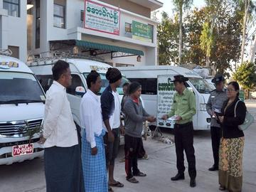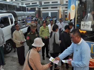မကွေးတိုင်းဒေသကြီး၊ အောင်လံမြို့နယ်၊ အောင်လံ-သမ္ဗူလ-ရွှေပန်းတောကားလမ်းဘေး၌ ပါတီစုံ ဒီမိုကရေစီအထွေထွေရွေးကောက်ပွဲတွင် မဲဆန္ဒရှင်ပြည်သူများအားလုံး ပါဝင်မဲပေးနိုင်ရေးအတွက် လက်ကမ်းစာစောင်များ ဖြန့်ဝေ