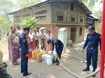 ၂၀၂၆ ခုနှစ်၊ ဧပြီ ၂၉ ရက် နံနက် ၁၀ နာရီ ၃၀ မိနစ်ခန့်က မကွေးတိုင်းဒေသကြီး၊ ရေနံချောင်းမြို့နယ်၊ ဘေးမဲ့ရပ်ကွက်၌ သောက်သုံးရေ လိုအပ်လျက်ရှိသော ဆုထူးပန် ဘုန်းတော်ကြီးကျောင်းနှင့် အိမ်ထောင်စုများထံသို့ ရေနံချောင်းမြို့နယ်မီးသတ်စခန်းမှ မီးသတ်တပ်ဖွဲ့ဝင်များသည် သက်ဆိုင်ရာအဖွဲ့အစည်းများနှင့်ပူးပေါင်း၍ ရေဂါလန် ၃,၂၀၀ အား သွားရောက်လှူဒါန်းခဲ့ကြောင်း သတင်းရရှိပါသည်။