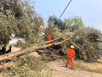 မန္တလေးတိုင်းဒေသကြီး၊ မြင်းခြံမြို့နယ်၊ စက်မှုဇုန်၊ ခွာညိုလမ်း၌ သစ်ပင်လဲကျသဖြင့် ရှင်းလင်းရေးလုပ်ငန်းများ ဆောင်ရွက်မှု