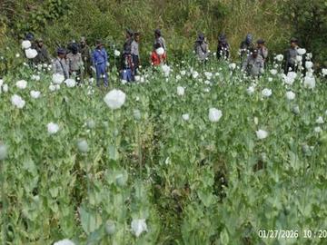 ၂၀၂၆ ခုနှစ်၊ ဇန်နဝါရီ ၂၇ ရက်က ရှမ်းပြည်နယ်အတွင်းရှိ မြို့နယ်အချို့၌ စုစုပေါင်း ဘိန်းစိုက်ခင်း ၁၄၇.၅ ဧကခန့်အား ဖျက်ဆီးခဲ့ကြောင်း သိရသည်။