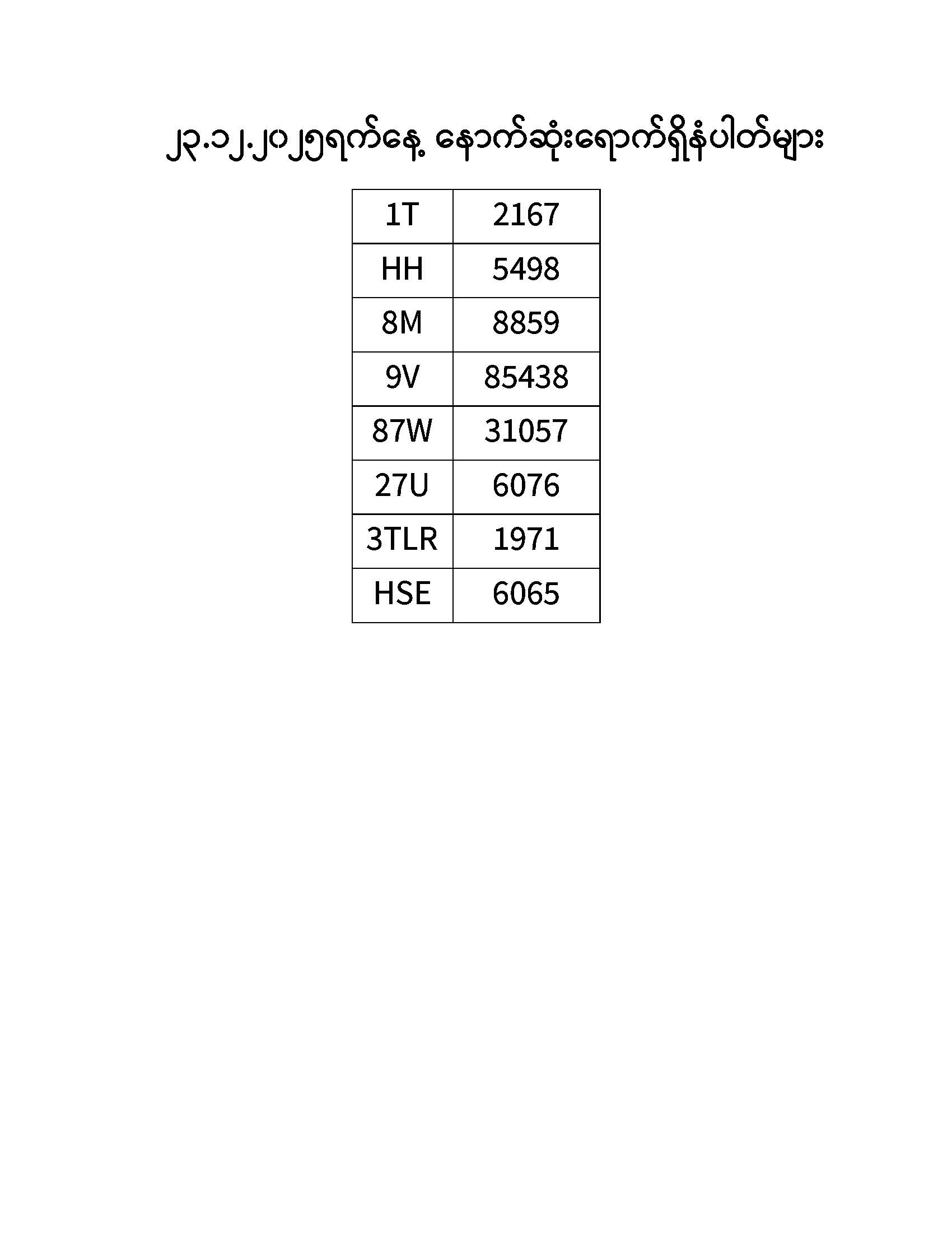 ၂၃.၁၂.၂၀၂၅ ရက်နေ့ထိ နောက်ဆုံးရောက်ရှိ နံပါတ်များ
