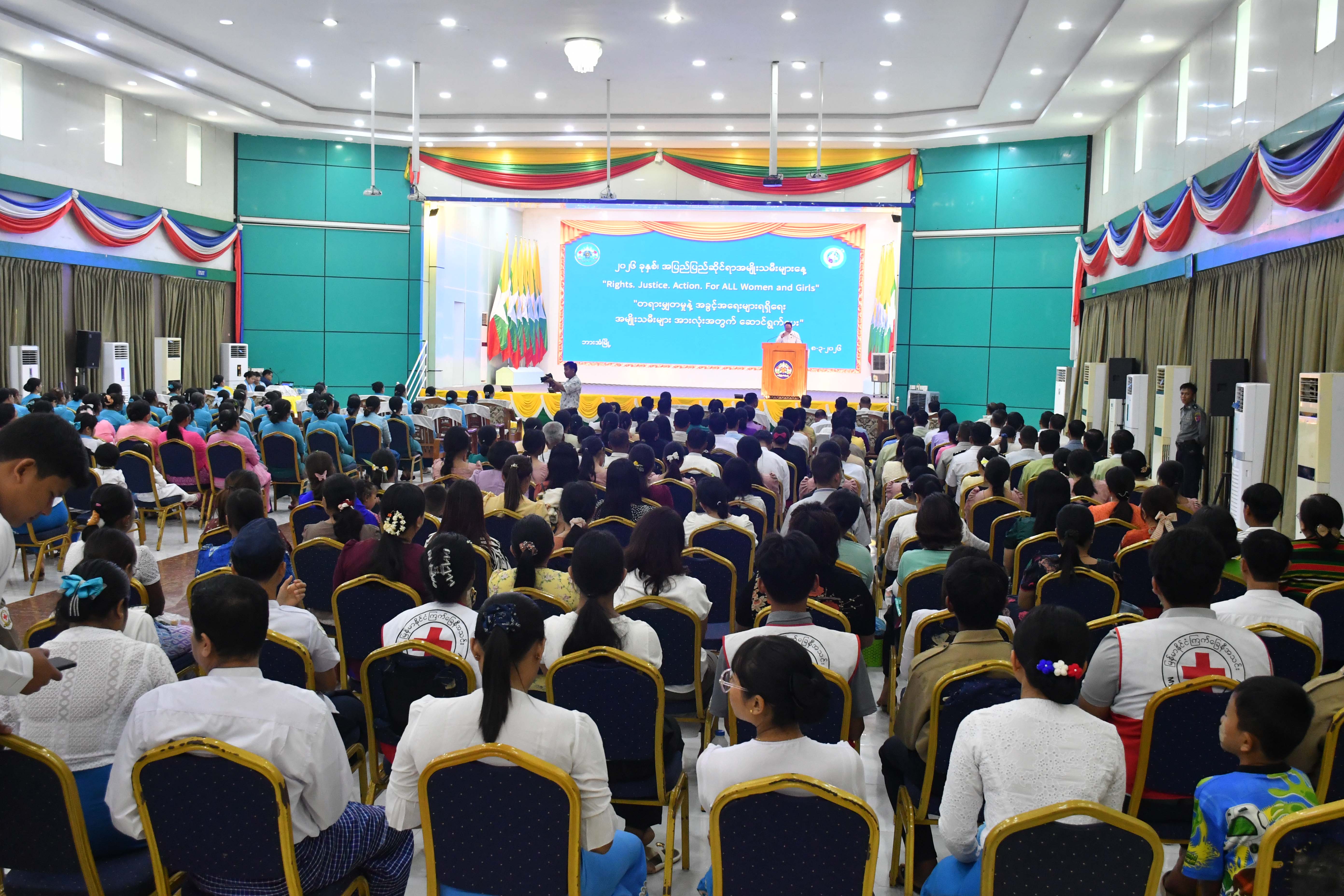 ဦးစွာ ပြည်နယ်ဝန်ကြီးချုပ်က ကရင်ပြည်နယ်အတွင်း အမျိုးသမီးများနှင့်အမျိုးသမီးငယ်ရွယ်များအတွက် တရား မျှတမှုနှင့် ကာကွယ်စောင့်ရှောက်မှုအပါအဝင် ပညာရေး၊ ကျန်းမာရေး၊ စီးပွားရေး၊ လူမှုရေး အစရှိသည့်ကဏ္ဍအားလုံးတွင် အခွင့်အရေးများကို အပြည့်အဝရရှိအောင် အကောင်အထည်ဖော်ဆောင်ရွက်ပေးလျက်ရှိကြောင်း၊ ပြည်နယ်အမျိုးသမီး ကော်မတီကို ဖွဲ့စည်းထားပြီး အမျိုးသမီးကာကွယ်စောင့်ရှောက်ရေးလုပ်ငန်းများနှင့်ဖွံ့ဖြိုးရေးလုပ်ငန်းများကို လူမှုရေး အသင်းအဖွဲ့များ၊ အစိုးရမဟုတ်သော ပြည်တွင်း/ပြည်ပအဖွဲ့အစည်းများနှင့်ပူးပေါင်းအကောင်အထည်ဖော်ဆောင်ရွက် လျက်ရှိပြီး ပြည်နယ်အတွင်း အမျိုးသမီးများအားလုံးဘဝလုံခြုံမှုရှိစေရန်၊ တရားမျှတမှုရှိစေရန်နှင့် ကဏ္ဍပေါင်းစုံတွင်တန်း တူညီမျှပါဝင်ခွင့်ရရှိစေရန် ဌာနဆိုင်ရာများ၊ အရပ်ဘက်လူမှုအဖွဲ့အစည်းများအားလုံး ဝိုင်းဝန်းကြိုးပမ်းဆောင်ရွက်ပေးကြ ရန် တိုက်တွန်းပြောကြားသည်။
