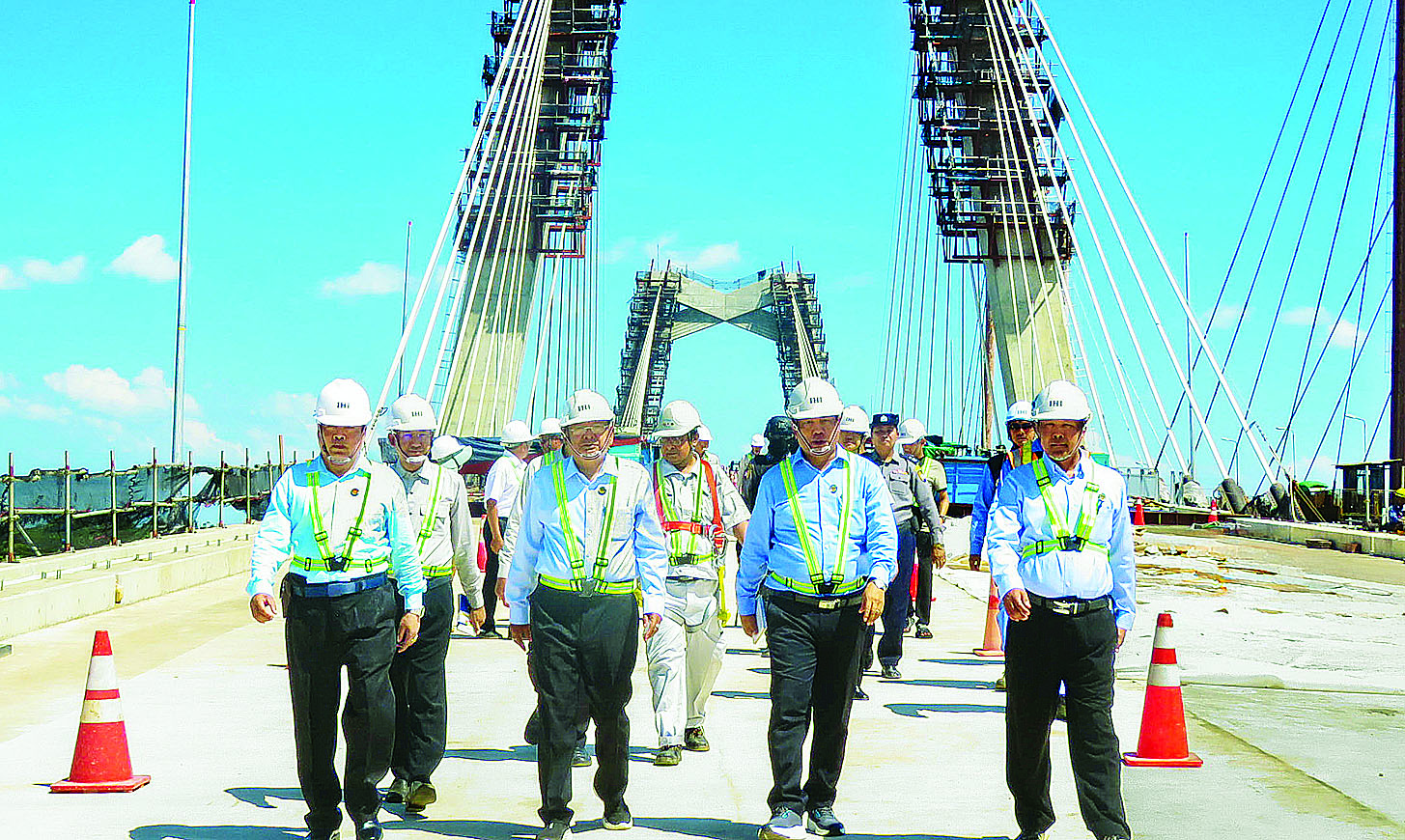 ဆောက်လုပ်ရေးဝန်ကြီးဌာန ဒုတိယဝန်ကြီး ဦးမျိုးမြင့်သည် မွန်ပြည်နယ် လမ်းပန်းဆက်သွယ်ရေးဝန်ကြီး ဦးတင်စန်းနိုင်နှင့်အတူ ယမန်နေ့က မွန်ပြည်နယ်အတွင်း တည်ဆောက်လျက်ရှိသည့် တံတားလုပ်ငန်းများ ကြည့်ရှုစစ်ဆေးသည်။