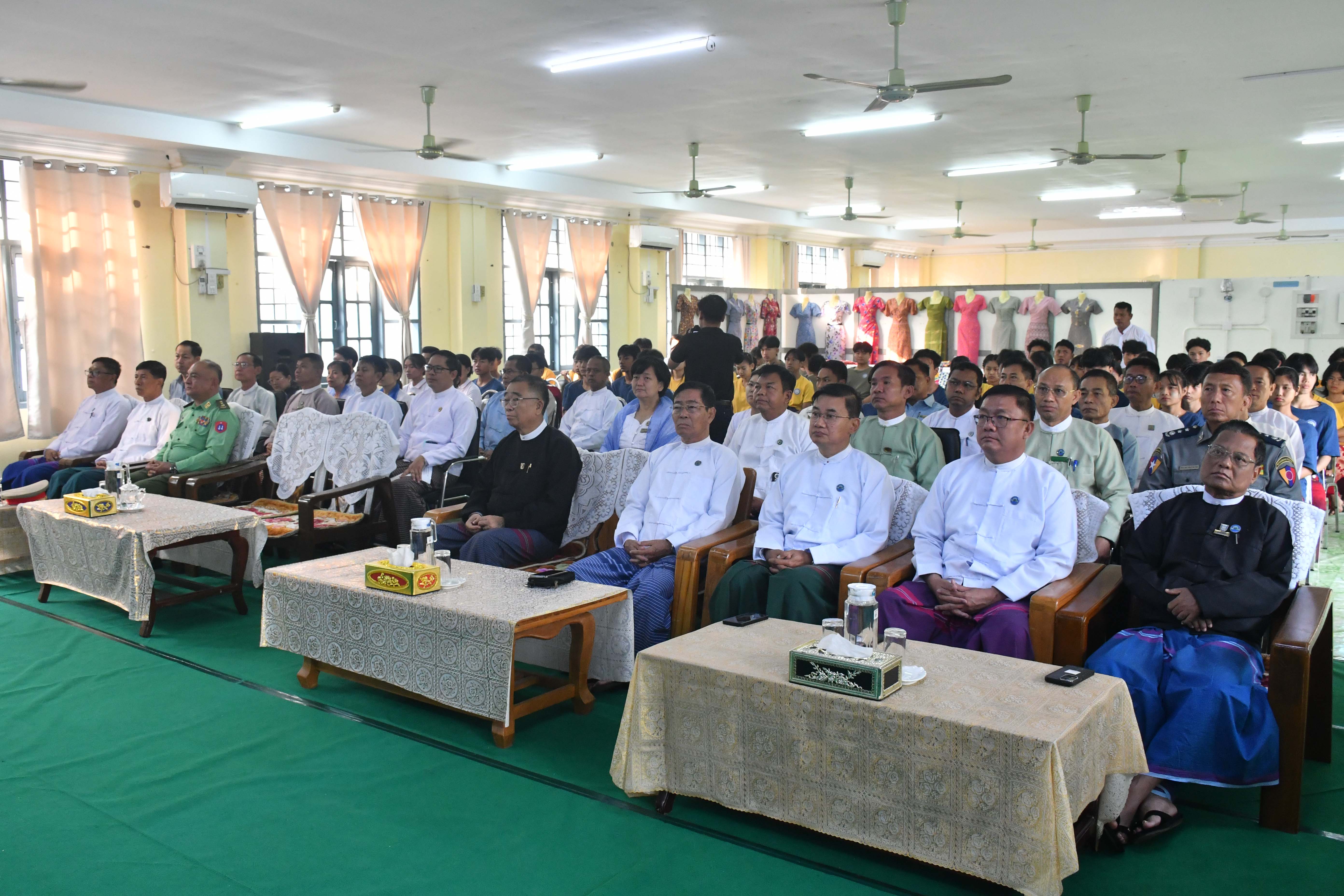 ထို့နောက် ပြည်နယ်ဝန်ကြီးချုပ်နှင့်တာဝန်ရှိသူများသည် သင်တန်းဆင်းသင်တန်သား၊သင်တန်းသူများနှင့်စုပေါင်း မှတ်တမ်းဓာတ်ပုံများရိုက်ကူးခဲ့ကြပြီး သင်တန်းသား၊သင်တန်းသူများအား ရင်းနှီးနွေးထွေးစွာတွေ့ဆုံနှုတ်ဆက်၍ အားပေး စကားများပြောကြားကာ သင်တန်းဆင်းသင်တန်းသား၊သင်တန်းသူများကို ကိုယ်တိုင်ဆောင်ရွက်ထားသော သင်တန်း ဆင်း လက်ရာများကို လှည့်လည်ကြည့်ရှုအားပေးခဲ့ကြပါသည်။