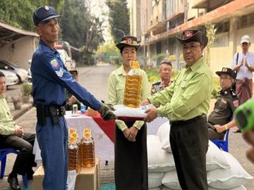 ရန်ကုန်တိုင်းဒေသကြီး၊ အလုံမြို့နယ်၌ ပြည်သူ့လုံခြုံရေးနှင့် အကြမ်းဖက်နှိမ်နင်းရေးအဖွဲ့ဝင်များသို့ ဆန်နှင့်ဆီ ထောက်ပံ့ပေးအပ်မှုအခမ်းအနားသို့ တက်ရောက်