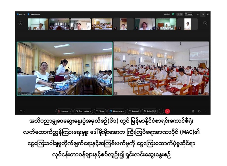 “ ကြီးကြပ်ရေးအာဏာပိုင်(MAC) ၏ ငွေကြေးခဝါချမှု တိုက်ဖျက်ရေးနှင့် အကြမ်းဖက်မှုကို ငွေကြေးထောက်ပံ့မှု (Anti-Money Laundering& Countering the Financing of Terrorism AML/CFT) ဆိုင်ရာ လုပ်ငန်းတာဝန်များအကြောင်း သိကောင်းစရာ” ခေါင်းစဉ်ဖြင့် အသိပညာမျှဝေဆွေးနွေးပွဲကျင်းပခြင်း