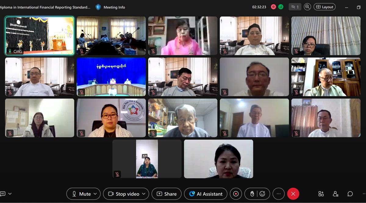 စာရင်းကောင်စီမှ ကြီးမှူး၍ ပြည်ထောင်စုစာရင်းစစ်ချုပ်ရုံး၊ အဆင့်မြင့် စာရင်းကိုင်နှင့်စာရင်းစစ်သင်တန်းကျောင်း၊ နေပြည်တော်တွင်ဖွင့်လှစ်သည့် နိုင်ငံပိုင်ကဏ္ဍ အတွက် နိုင်ငံတကာဘဏ္ဍာရေးအစီရင်ခံခြင်းစံများ ဒီပလိုမာသင်တန်းအမှတ်စဉ်(၂)၊အပိုင်း (၂) ( Diploma in International Financial Reporting Standards - Dip IFRS) သင်တန်းဆင်းပွဲ အခမ်းအနားကို ၂၀၂၆ ခုနှစ်၊ ဇန်နဝါရီလ ၂၃ ရက်နေ့ နံနက် ၉း၃၀ နာရီတွင် နေပြည်တော်ရှိ ပြည်ထောင်စုစာရင်းစစ်ချုပ်ရုံး၊ နဝရတ်ခန်းမ၌ Hybrid စနစ်ဖြင့် ကျင်းပခဲ့သည်။