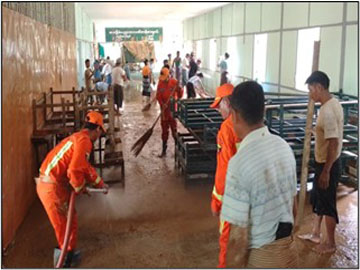 ပြည်ထောင်စုနယ်မြေ၊ နေပြည်တော်၊ တပ်ကုန်းမြို့နယ်၊ အခြေခံပညာအလယ်တန်းကျောင်း(ရွာသစ်)၌ ရေဝင်ရောက်မှုကြောင့် တင်ကျန်ခဲ့သော ရွှံ့နွံများအား ဆေးကြောသန့်ရှင်းခြင်းလုပ်ငန်းများ ဆောင်ရွက်
