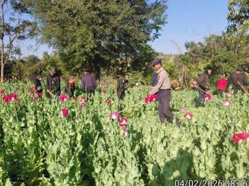 ၂၀၂၆ ခုနှစ်၊ ဖေဖော်ဝါရီ ၄ ရက်က ရှမ်းပြည်နယ်အတွင်းရှိ မြို့နယ်အချို့၌ စုစုပေါင်း ဘိန်းစိုက်ခင်း ၂၄၉ ဧကခန့်အား ဖျက်ဆီးခဲ့ကြောင်း သိရသည်။