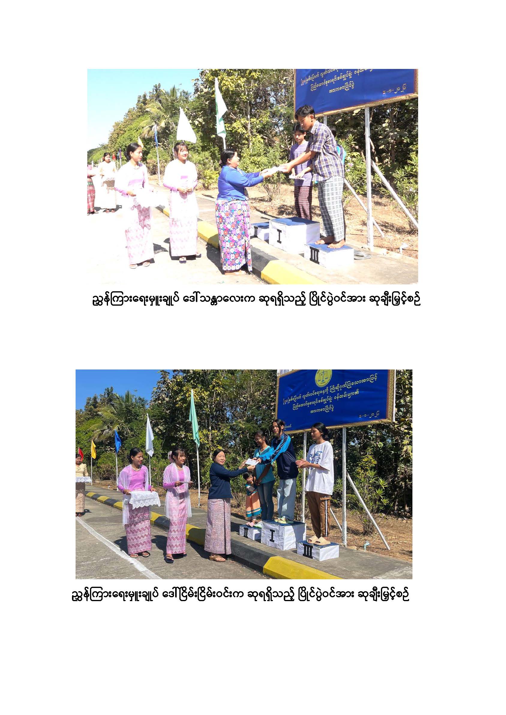 ထို့နောက် ဆုပေးပွဲကို ဆက်လက်ကျင်းပရာ ပြည်ထောင်စုစာရင်းစစ်ချုပ်၊ ဒုတိယ စာရင်းစစ်ချုပ်၊ အမြဲတမ်းအတွင်းဝန်နှင့် တာဝန်ရှိသူများက အားကစားပြိုင်ပွဲအမျိုးအစား အလိုက် ပထမ၊ ဒုတိယနှင့် တတိယဆုရရှိသူများအား ဆုများချီးမြှင့်ခဲ့ကြပြီးနောက် ပြိုင်ပွဲဝင် များအားလုံးကို နှစ်သိမ့်ဆုများ ချီးမြှင့်ပေးအပ်ခဲ့သည်။