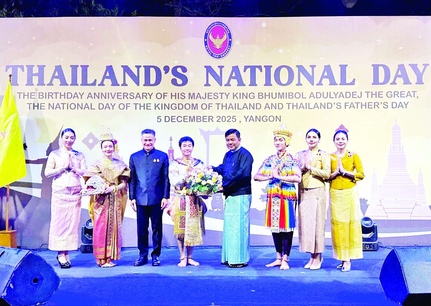 ထိုင်းနိုင်ငံဘုရင်မင်းမြတ် ဘူမိဘောအဒူလျာဒက်ဂျ်၏ မွေးနေ့၊ ထိုင်းနိုင်ငံ၏ အမျိုးသားနေ့နှင့် Thailand's Father's Day အထိမ်းအမှတ်ဧည့်ခံပွဲကို ယနေ့ညနေပိုင်းတွင် ရန်ကုန်မြို့ရှိ မြန်မာနိုင်ငံဆိုင်ရာ ထိုင်းနိုင်ငံ သံအမတ်ကြီးနေအိမ်၌ကျင်းပရာ နိုင်ငံတော်လုံခြုံရေးနှင့် အေးချမ်းသာယာရေးကော်မရှင်အဖွဲ့ဝင်၊ ကာကွယ်ရေးဝန်ကြီးဌာန ပြည်ထောင်စုဝန်ကြီး ဗိုလ်ချုပ်ကြီး မောင်မောင်အေးတက်ရောက်သည်။