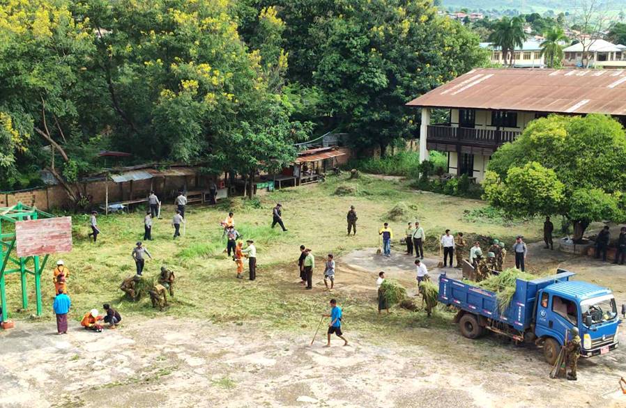 ၎င်းအပြင် စာသင်ကျောင်းများ အမြန်ဆုံးပြန်လည်ဖွင့်လှစ်နိုင်ရေးအတွက် လုံခြုံရေးတပ်ဖွဲ့ဝင်များ၊ ဌာနဆိုင်ရာဝန်ထမ်းများနှင့် ဒေသခံပြည်သူများစုပေါင်း၍ ကျောက်မဲမြို့ အမှတ်(၁) အခြေခံပညာအထက်တန်းကျောင်း၌ ချုံနွယ်ပေါင်းမြက်များ ခုတ်ထွင်ရှင်းလင်းခြင်း၊ ရေစီးရေလာကောင်းမွန်စေရေးအတွက် ရေနုတ်မြောင်းများ ဆယ်တင်တူးဖော်ပေးခြင်းနှင့် စာသင်ခန်းများအတွင်း၊ အပြင်သန့်ရှင်းရေးပြုလုပ်ပေးခြင်းတို့ကို စုပေါင်းဆောင်ရွက်ပေးကြပြီး ကျောက်မဲမြို့ကျက်သရေဆောင်ခန်းမ၊ ကျောက်မဲမြို့မဈေးနှင့် ပတ်ဝန်းကျင်နေရာများ၌လည်း စုပေါင်းသန့်ရှင်းရေးလုပ်ငန်းများ ဆောင်ရွက်ပေးကြသည်။