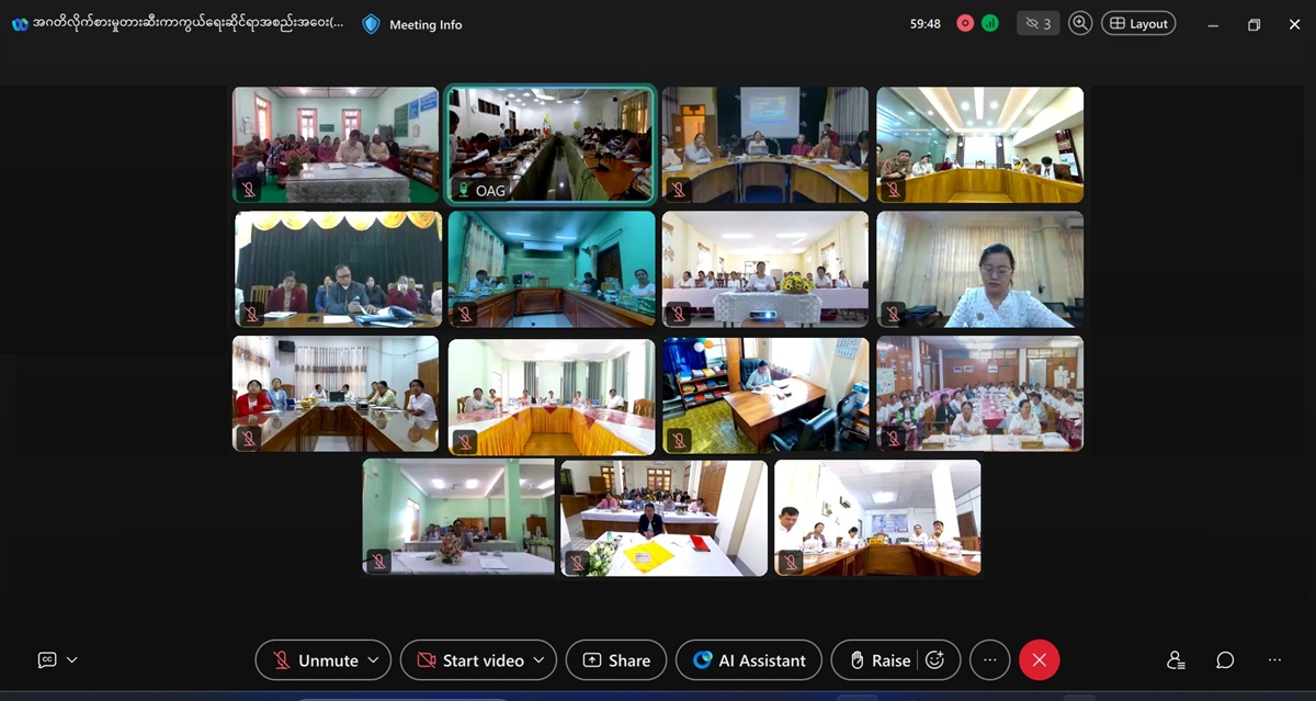 ပြည်ထောင်စုစာရင်းစစ်ချုပ်ရုံးနှင့် တိုင်းဒေသကြီး/ပြည်နယ်စာရင်းစစ်ချုပ်ရုံးများရှိ အဂတိလိုက်စားမှုတားဆီးကာကွယ်ရေးအဖွဲ့များ၏ အဂတိလိုက်စားမှုတားဆီးကာကွယ်ရေး ဆိုင်ရာအစည်းအဝေးအမှတ်စဥ် (၁/၂၀၂၅) ကို ၂၀၂၅ ခုနှစ် ဒီဇင်ဘာလ ၂၉ ရက်နေ့ နံနက် ၉:၃၀ နာရီတွင် ပြည်ထောင်စုစာရင်းစစ်ချုပ်ရုံး၊ ပတ္တမြားခန်းမ၌ Hybrid စနစ်ဖြင့်ကျင်းပ ခဲ့သည်။