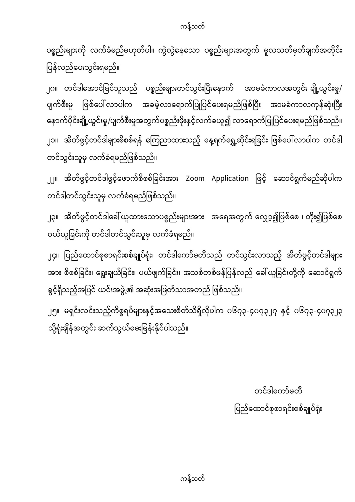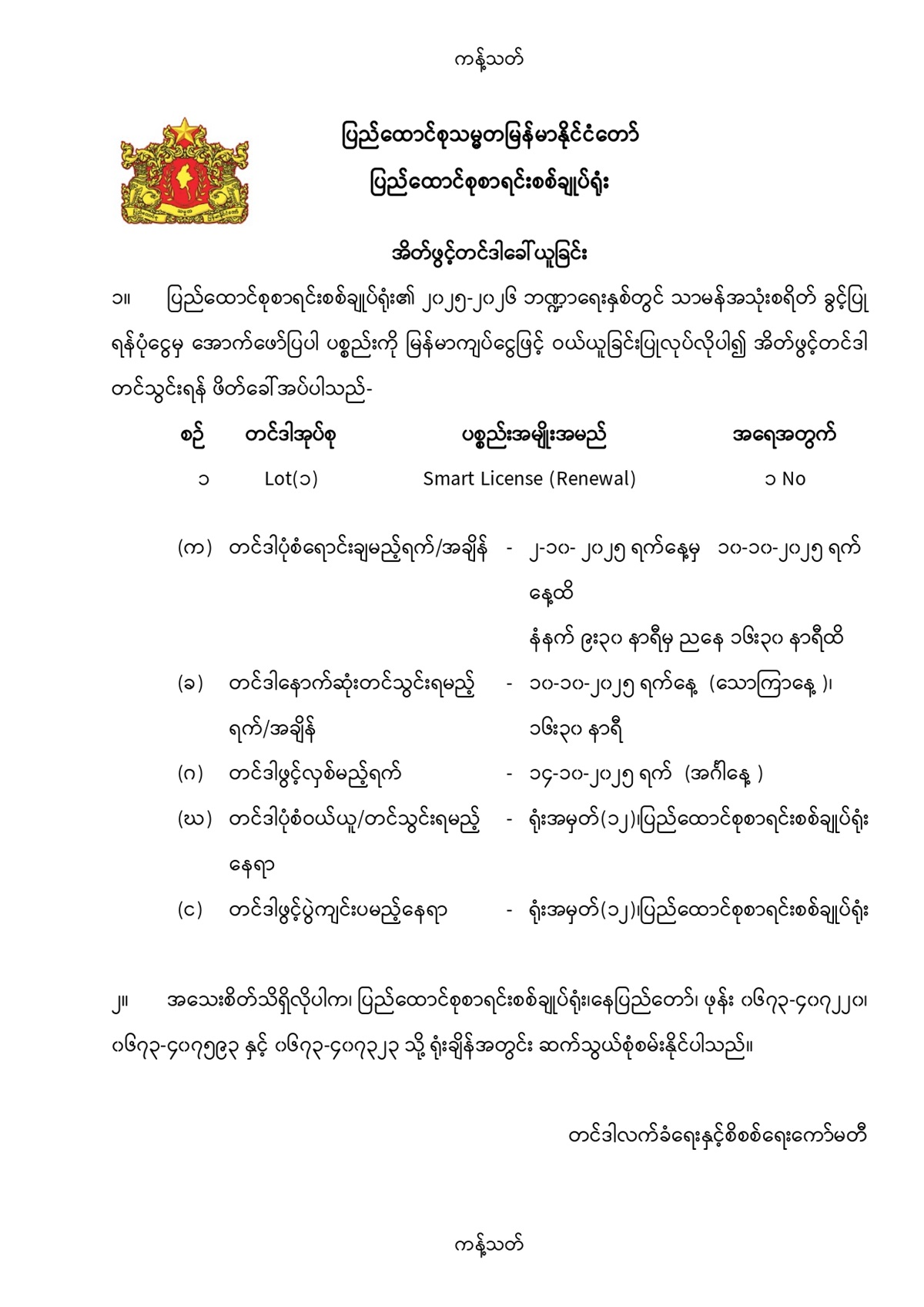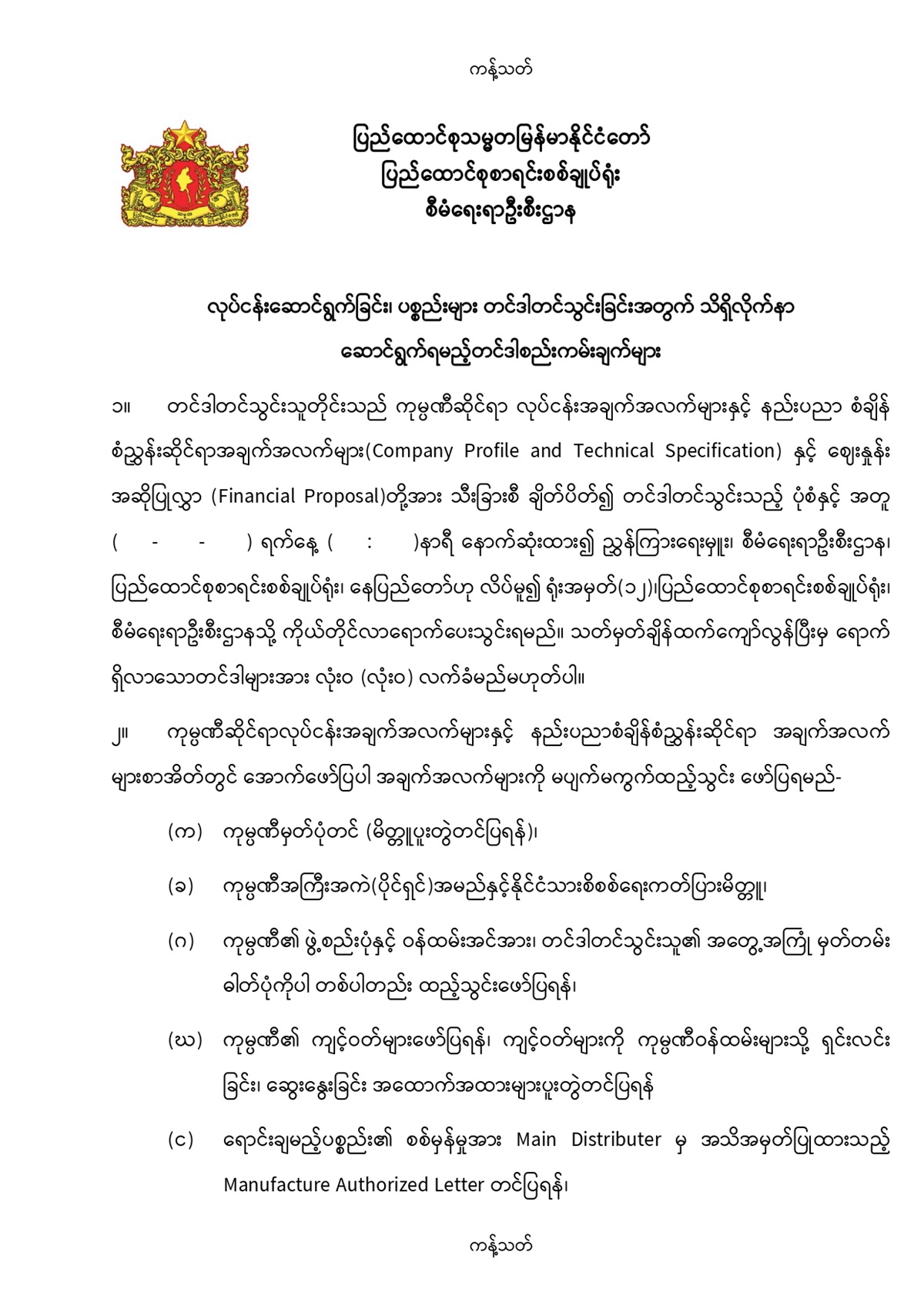 Posted on Oct 1, 2025နေပြည်တော်စည်ပင်သာယာရေးကော်မတီ၊ စီမံရေးရာဌာနမှ ကန်ကွက်နိုင်ကြောင်းကြော်ငြာခြင်း