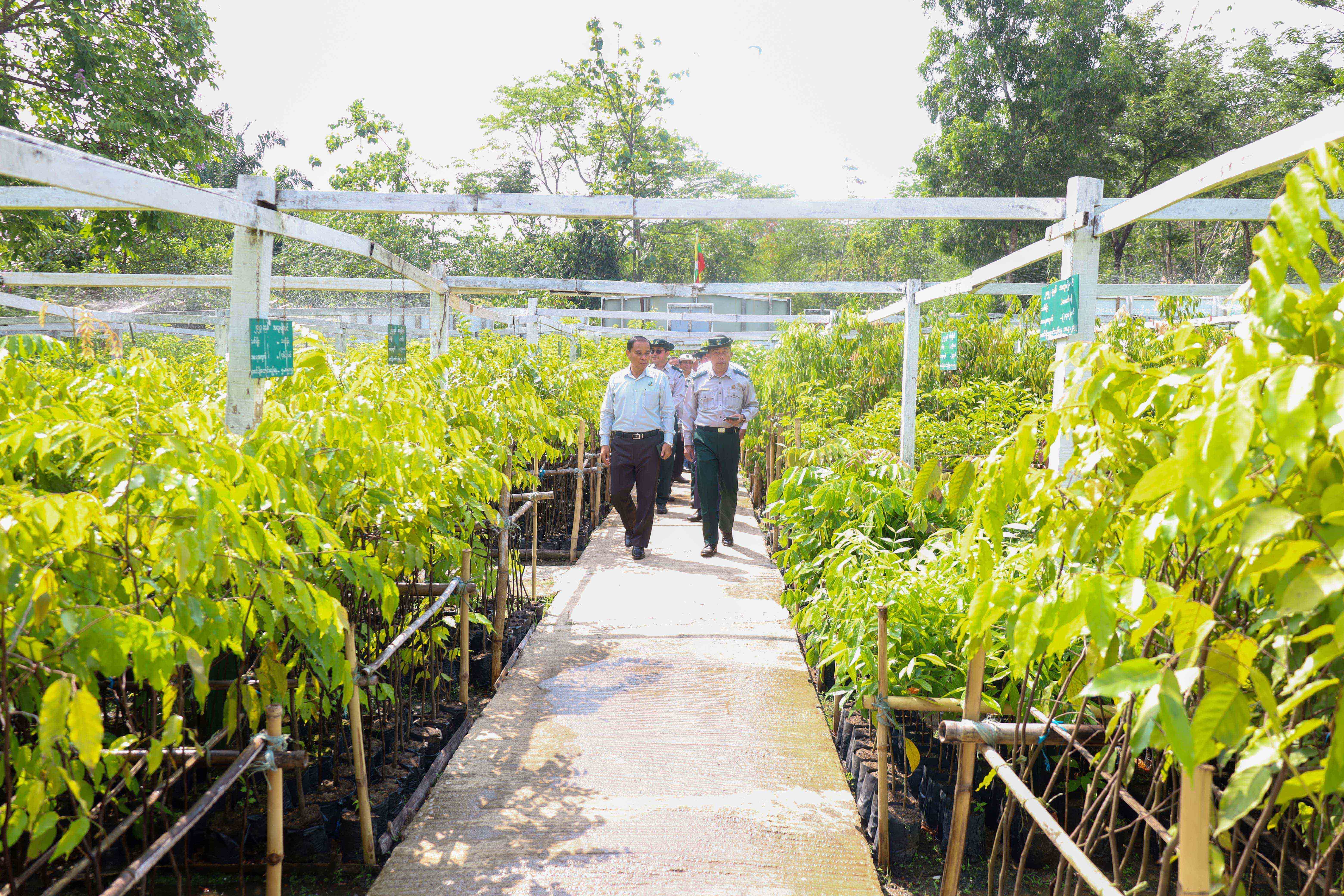 သယံဇာတနှင့် သဘာဝပတ်ဝန်းကျင် ထိန်းသိမ်းရေးဝန်ကြီးဌာန၊ ပြည်ထောင်စုဝန်ကြီး ဦးဆန်းဦးသည် ၁၉-၄-၂၀၂၆ ရက်နေ့ နံနက်ပိုင်းတွင် ရန်ကုန်တိုင်းဒေသကြီး၊ မင်္ဂလာဒုံမြို့နယ်၊ မင်္ဂလာဒုံ ပျိုးဥယျာဉ် သို့ သွားရောက်စစ်ဆေးရာ ရန်ကုန်တိုင်းဒေသကြီး၊ သစ်တောဦးစီးဌာန ညွှန်ကြားရေးမှူးက ၂၀၂၆ မိုးရာသီ သစ်ပင်စိုက်ပျိုးပွဲများ ကျင်းပနိုင်ရေး၊ ဒေသတွင်းစိမ်းလန်းစိုပြည် စေရန်အတွက် လူထုဖြန့် ပျိုးပင်များ ဖြန့်ဝေပေးနိုင်ရေးနှင့် နိုင်ငံတော်အဆင့် သစ်ပင်စိုက်ပွဲ ကျင်းပနိုင်ရေးအတွက် ကြိုတင် ပြင်ဆင်ဆောင်ရွက်နေမှုများအား ရှင်းလင်းတင်ပြရာ ပြည်ထောင်စုဝန်ကြီးမှ နိုင်ငံတော်အဆင့် သစ်ပင်စိုက်ပွဲကျင်းပနိုင်ရေးအတွက် မြေနေရာ ကြိုတင်ပြင်ဆင်ထားရှိရန်နှင့် အမြင့်(၃)ပေနှင့် အထက်ပျိုးပင်များကို စုဆောင်းထားရှိရန်၊ နိုင်ငံတော်အကြီးအကဲ၏ လမ်းညွှန်ချက်အရ ရာသီဥတု ပြောင်းလဲမှုများလျော့ချရန် သဘာဝပတ်ဝန်းကျင် ထိန်းသိမ်းရေးလုပ်ငန်းဖြစ်သော သစ်ပင်စိုက်ပျိုးခြင်း လုပ်ငန်းများကို အရှိန်အဟုန်မြှင့်ဆောင်ရွက်ကြရန် မှာကြားပြီး ပျိုးဥယျာဥ်အတွင်း လှည့်လည် ကြည့်ရှုစစ်ဆေးသည်။
