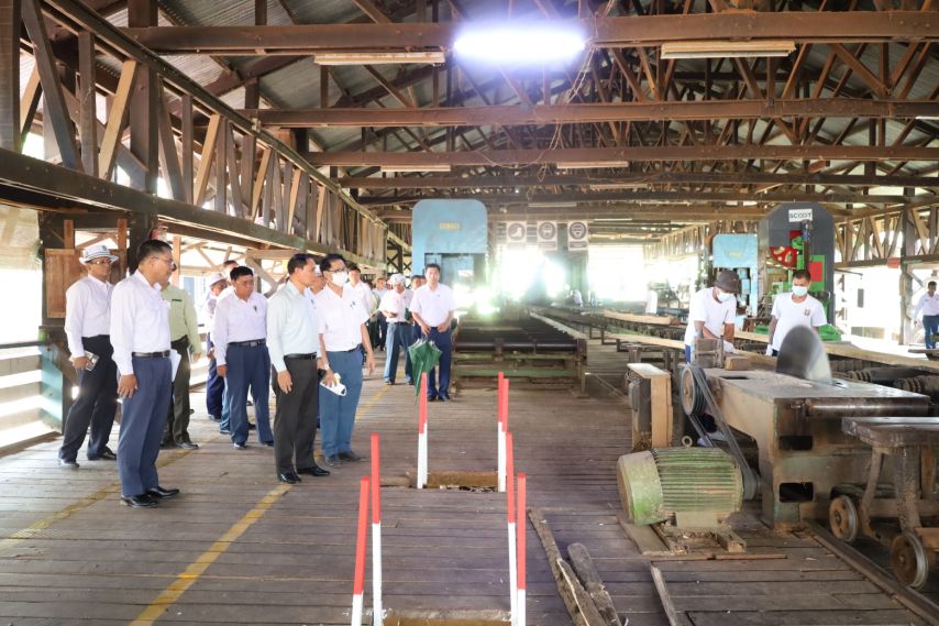 ထို့နောက် ရွှေပြည်သာမြို့နယ်၊ ဝါးတစ်ရာစက်မှုဇုံအတွင်းရှိ မြန်မာ့သစ်လုပ်ငန်း၊ ပြည်တွင်းရောင်းဝယ်ရေးနှင့်သစ်စက်ဌာန၊ အမှတ်(၉)သစ်စက်သို့ သွားရောက်စစ်ဆေးရာ တာဝန်ရှိသူများမှ လုပ်ငန်းဆောင်ရွက်မှု အခြေအနေများအား ရှင်းလင်းတင်ပြရာ ပြည်ထောင်စုဝန်ကြီးက ရှင်းလင်းတင်ပြမှုများအပေါ် သိလိုသည်များအား မေးမြန်းခဲ့ပြီး လိုအပ်သည်များ မှာကြားသည်။