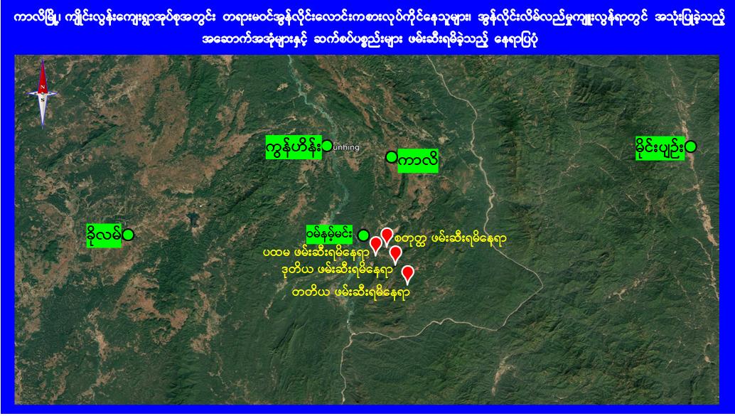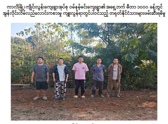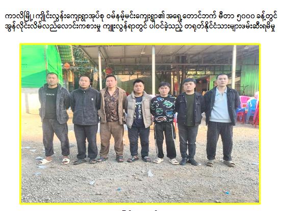 ရှမ်းပြည်နယ်(တောင်ပိုင်း)၊ ကွန်ဟိန်းမြို့နယ်၊ ကာလိမြို့၊ ကျိုင်းလွန်းကျေးရွာအုပ်စု၊ ဝမ်နမ့်မင်းကျေးရွာအနီး၌ အွန်လိုင်းလိမ်လည်လောင်းကစားမှုလုပ်ငန်းများ လုပ်ကိုင်နေသူများအား လုပ်ငန်းသုံးဆက်စပ်ပစ္စည်းများနှင့်အတူ ဖမ်းဆီးရမိ