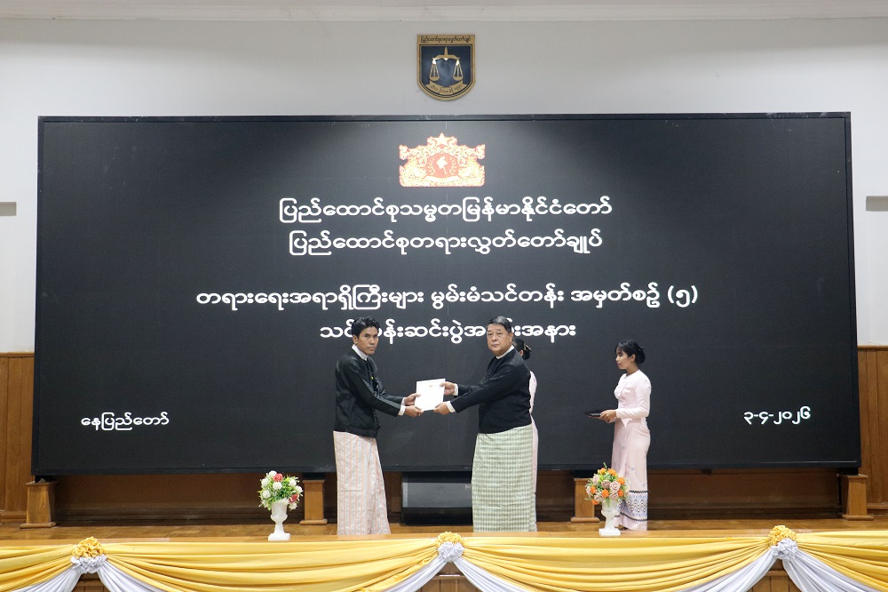 The Closing Ceremony of the Refresher Course for Senior Judicial Officers No. (5) was held at the Judicial College of the Supreme Court of the Union at 7:00 AM this morning, and the Union Chief Justice U Tha Htay attended and delivered the opening speech.