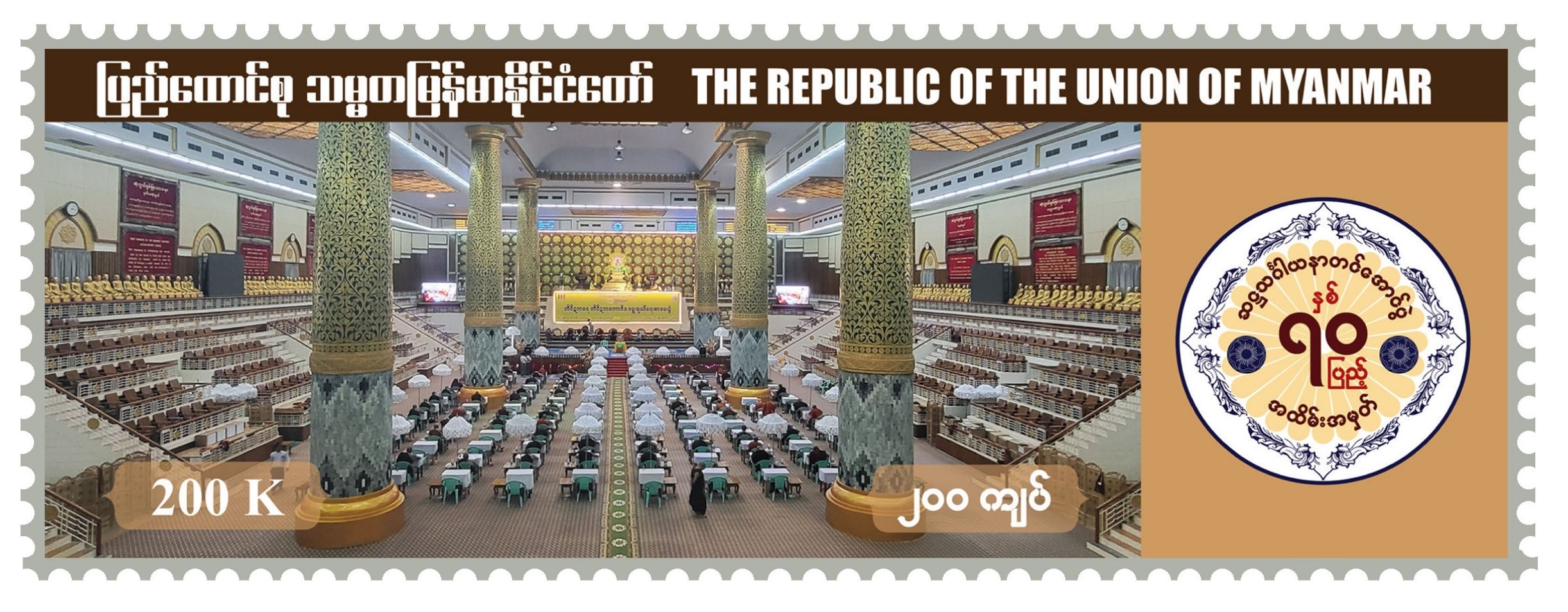 ဒီဂျစ်တယ်ဖွံ့ဖြိုးတိုးတက်ရေးနှင့် ဆက်သွယ်ရေးဝန်ကြီးဌာန၊ မြန်မာ့စာတိုက်လုပ်ငန်းမှ ဆဋ္ဌသင်္ဂါယနာတင်အောင်ပွဲ နှစ်(၇၀)ပြည့်အထိမ်းအမှတ်အဖြစ် သာသနာရေးဝန်ကြီးဌာနမှအတည်ပြုထားသည့် ဓာတ်ပုံဒီဇိုင်း ဦးအောင်ဇော်မြတ် (ကျော့သီသ) ဒီဇိုင်းရေးဆွဲထားသော (၂၀၀ ကျပ်တန်) အထူးထုတ် စာပို့တံဆိပ်ခေါင်းသစ် (၇) မျိုးအား ၂၀၂၆ ခုနှစ် ၊ ဧပြီလ (၃၀) ရက် ၊ မြန်မာသက္ကရာဇ် ၁၃၈၈ ခုနှစ်၊ ကဆုန်လပြည့်နေ့ (ကြာသပတေးနေ့) နံနက် (၀၉း၃၀)နာရီ အချိန်မှ စတင်၍ သီရိမင်္ဂလာ ကမ္ဘာအေးကုန်းမြေရှိ မဟာမင်္ဂလာအခမ်းအနား၏ အထိမ်းအမှတ်ပစ္စည်းအရောင်းဆိုင်နှင့် နေပြည်တော်ဗဟိုစာတိုက်ကြီး၊ ရန်ကုန်စာတိုက်ကြီး၊ မန္တလေးစာတိုက်ကြီးများတွင် တစ်ပြိုင်တည်း ရောင်းချပေးသွားမည်ဖြစ် ပါသည်။