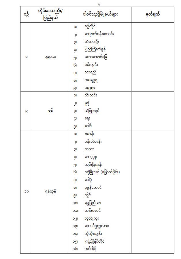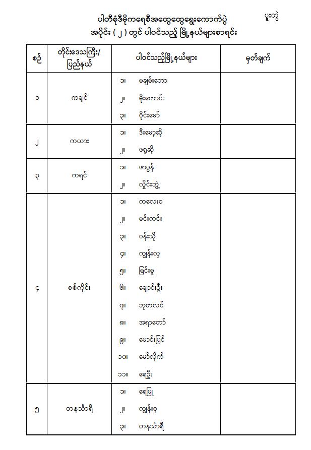 ပါတီစုံဒီမိုကရေစီအထွေထွေရွေးကောက်ပွဲအပိုင်း( ၂ )ကျင်းပမည့် နေ့ရက်နှင့်ပါဝင်သည့်မြို့နယ်များ သတ်မှတ်ကြေညာခြင်း