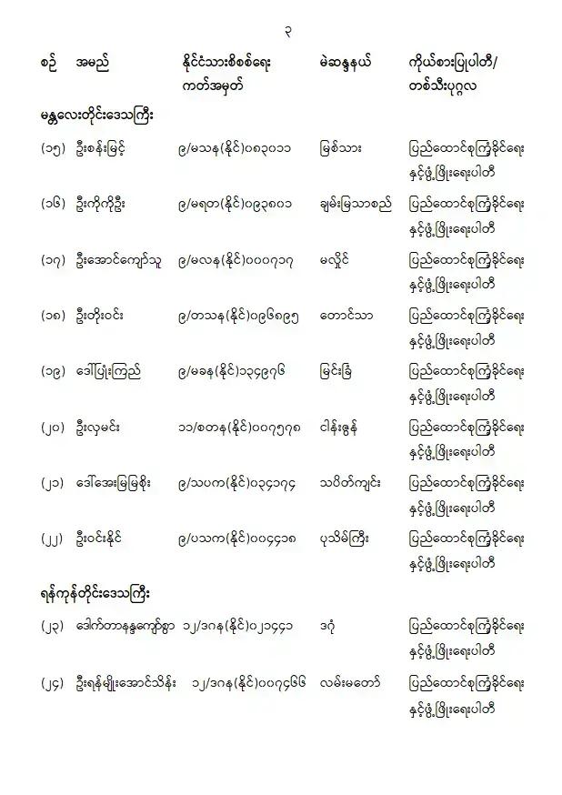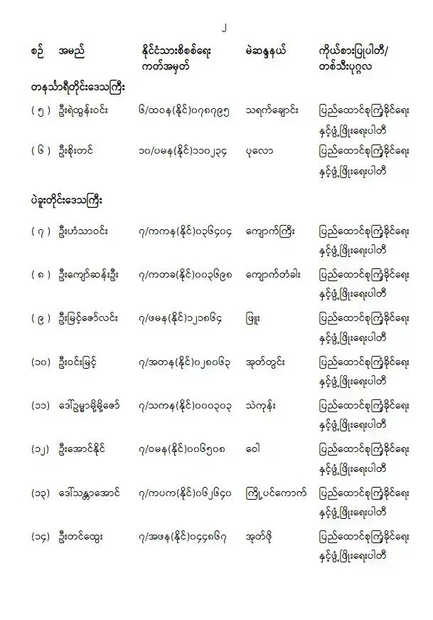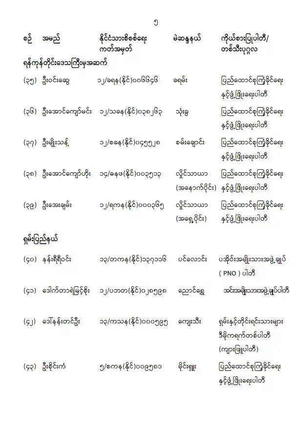 ပြည်သူ့လွှတ်တော်ကိုယ်စားလှယ်အဖြစ် ရွေးကောက်တင်မြှောက်ခံရသူများ အမည်စာရင်းကြေညာခြင်း