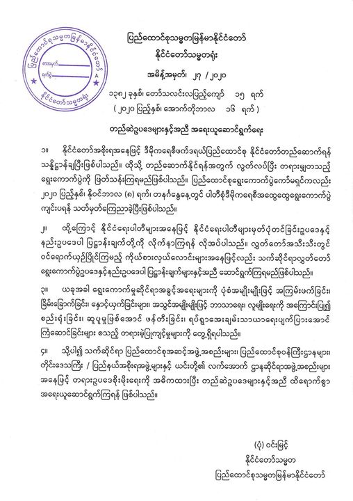 အမိန့်အမှတ်၊ ၂၇/ ၂၀၂၀