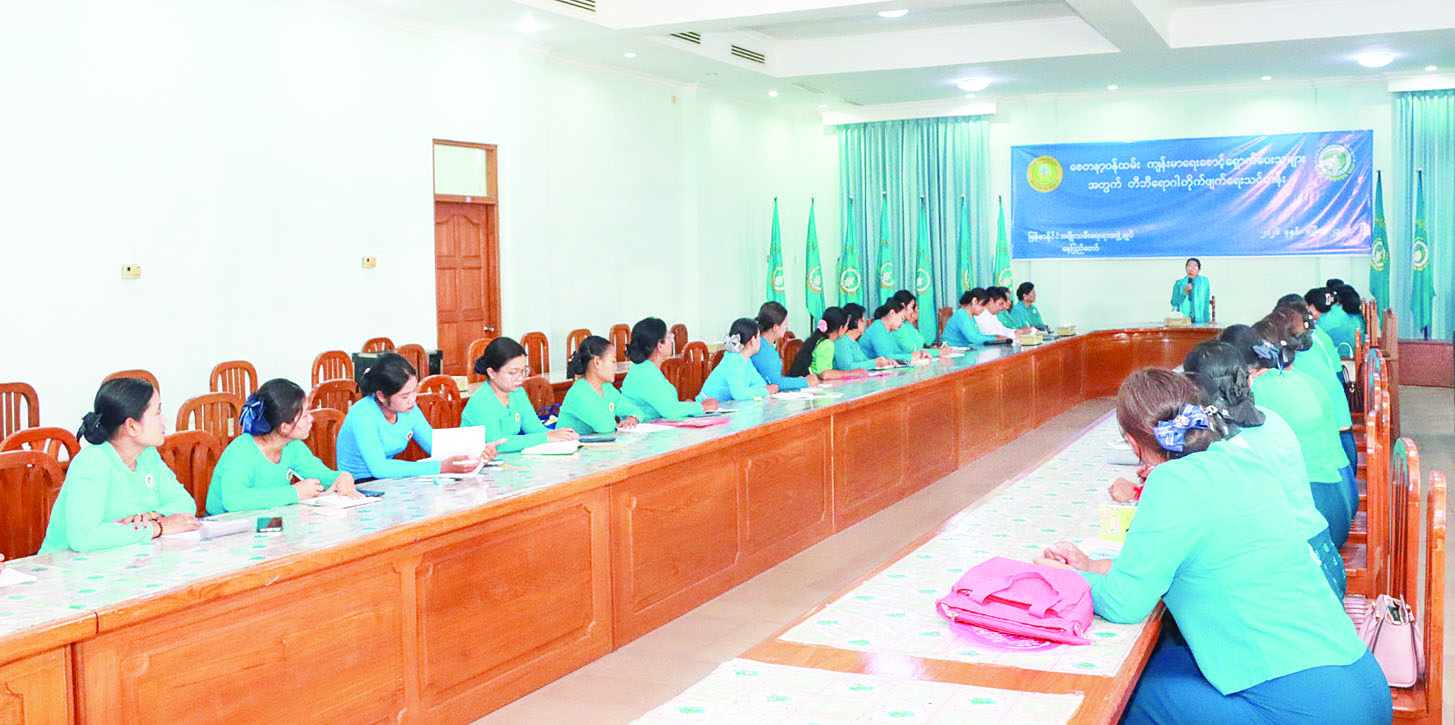 ပြည်သူ့ကျန်းမာရေးဦးစီးဌာနနှင့် မြန်မာနိုင်ငံအမျိုးသမီးရေးရာအဖွဲ့ချုပ်တို့ ပူးပေါင်းဆောင်ရွက်သည့် “ပြည်သူလူထုအခြေပြု တီဘီရောဂါတိုက်ဖျက်ရေးသင်တန်း” ကို မြန်မာနိုင်ငံ အမျိုးသမီးရေးရာအဖွဲ့ချုပ် နေပြည်တော်၌ ကျင်းပသည်။